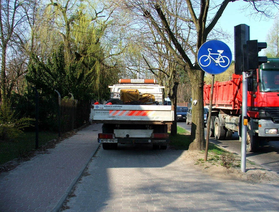 Za chwilę jesteśmy już w Podkowie Leśnej i drogą numer 719 podążamy w stronę Grodziska Mazowieckiego. Zaczyna się koszmar zakazu ruchu rowerów. Wzdłuż szosy wytyczone są niby drogi dla rowerów, a w rzeczywistości drogi współdzielone dla pieszych i rowerzystów. Drogi są z kostki; to poszerzają się, to zwężają.