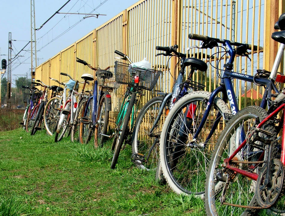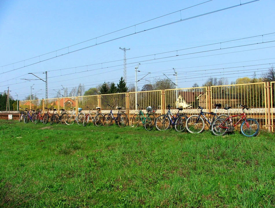 Przy stacji kolejowej w Jaktorowie wspaniale prezentują się rowery przy specyficznym Park and Ride.