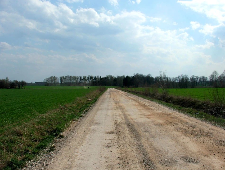 Jedziemy w stronę miejscowości Popień–Parcela, potem w stronę Marianowa i Leszczyn. Chwilami jedziemy po asfaltowej drodze, potem po szutrze, znowu po niby-asfalcie. Najgorsza nawierzchnia to asfalt z zatopionymi kawałkami kamieni – jazda po tym to prawdziwa gehenna.
