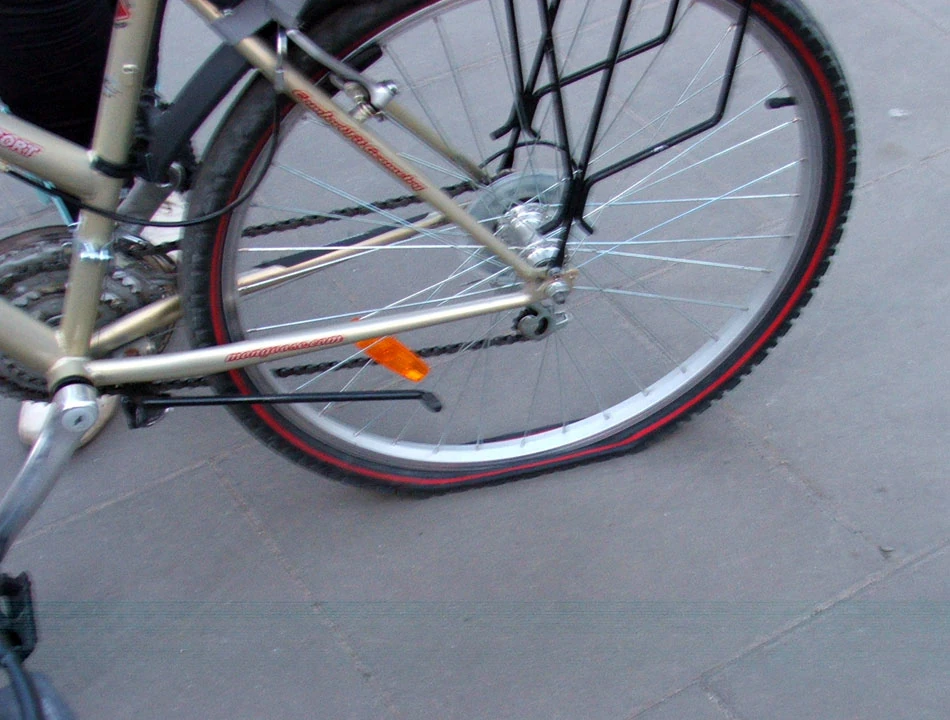 Po postoju ruszyliśmy z Masą, jednak szczęście trwało krótko. Usłyszeliśmy huk, jakby wystrzał petardy. Ale to nie były fajerwerki, tylko Małgorzata złapała gumę. Pękła nie tylko dętka, opona miała sporą dziurę. Zakleiliśmy oponę, zmieniliśmy dętkę i na paluszkach ruszyliśmy w stronę dworca Łódź Widzew. Masa oczywiście odjechała bez nas.
