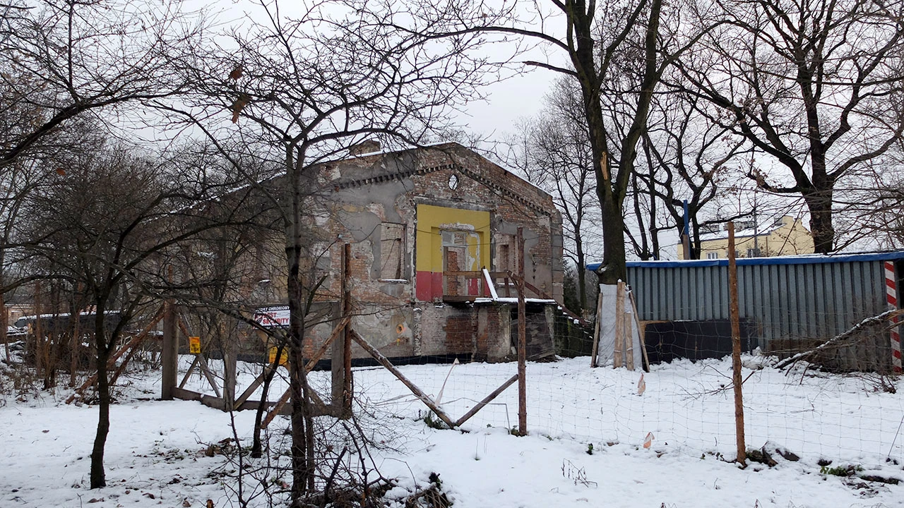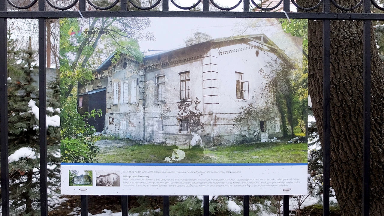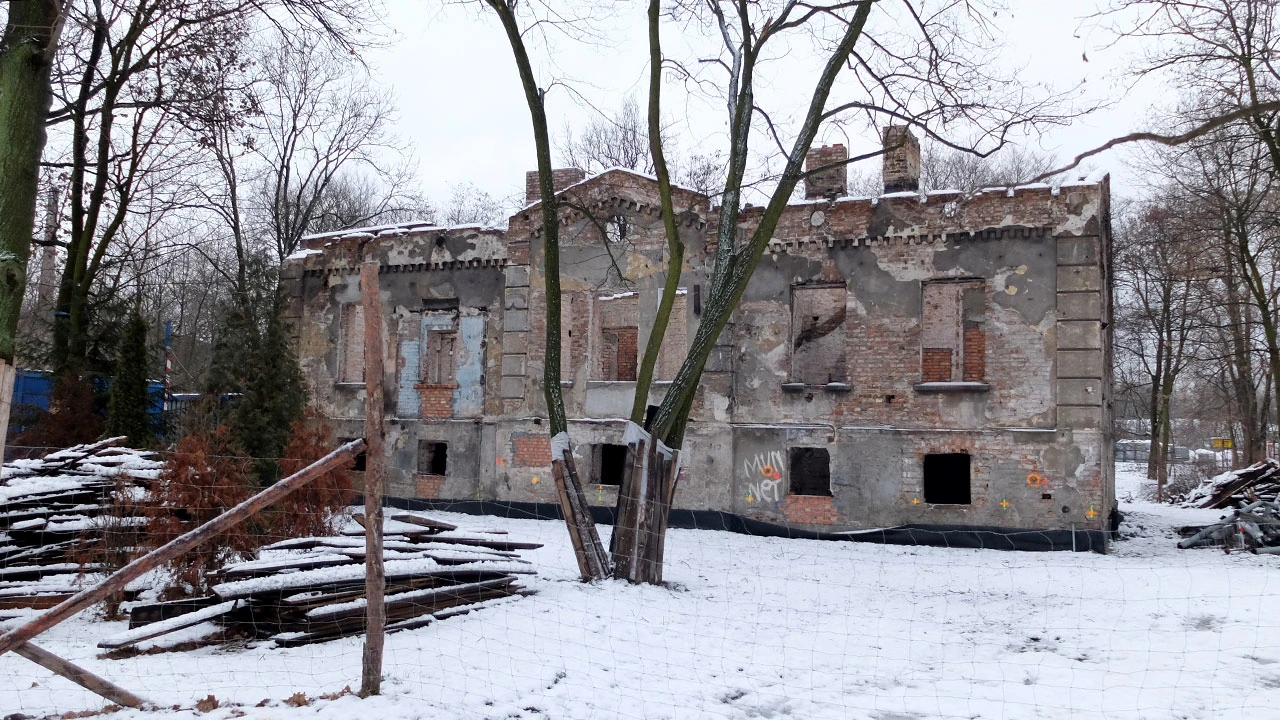 Jeździmy Księcia Ziemowita dość często, ale jakoś nigdy nie zwolniliśmy, nie pokręciliśmy się po okolicznych uliczkach. Dzisiaj odbijamy i skręcamy w Chemiczną, potem w Rybieńską i Siarczaną. W okolicy jest jeszcze Hutnicza i Szklana. Nazwy brzmią przemysłowo, czyli są jak najbardziej na miejscu na Targówku Przemysłowym. Dzisiaj jednak trudno nam zobaczyć tu „przemysł”. W okolicy są głównie stalowe hale – może coś w nich produkują? Na Siarczanej spotykamy budynek zupełnie „nie przemysłowy”. To ruiny okazałej willi, być może jakiegoś fabrykanta.