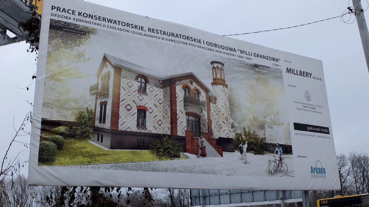 Chełmżyńską przecinamy Strażacka i mamy nadzieję zobaczyć odbudowaną Willę Granzowa. Gdy byliśmy tu ostatnim razem dwa lata temu, z willi nic w zasadzie nie zostało – i to wszystko za zgodą konserwatora zabytków. Teraz jest jeszcze gorzej – o ile może być gorzej. Budynku nadal nie ma, jest za to plac do wynajęcia.
