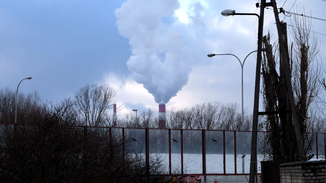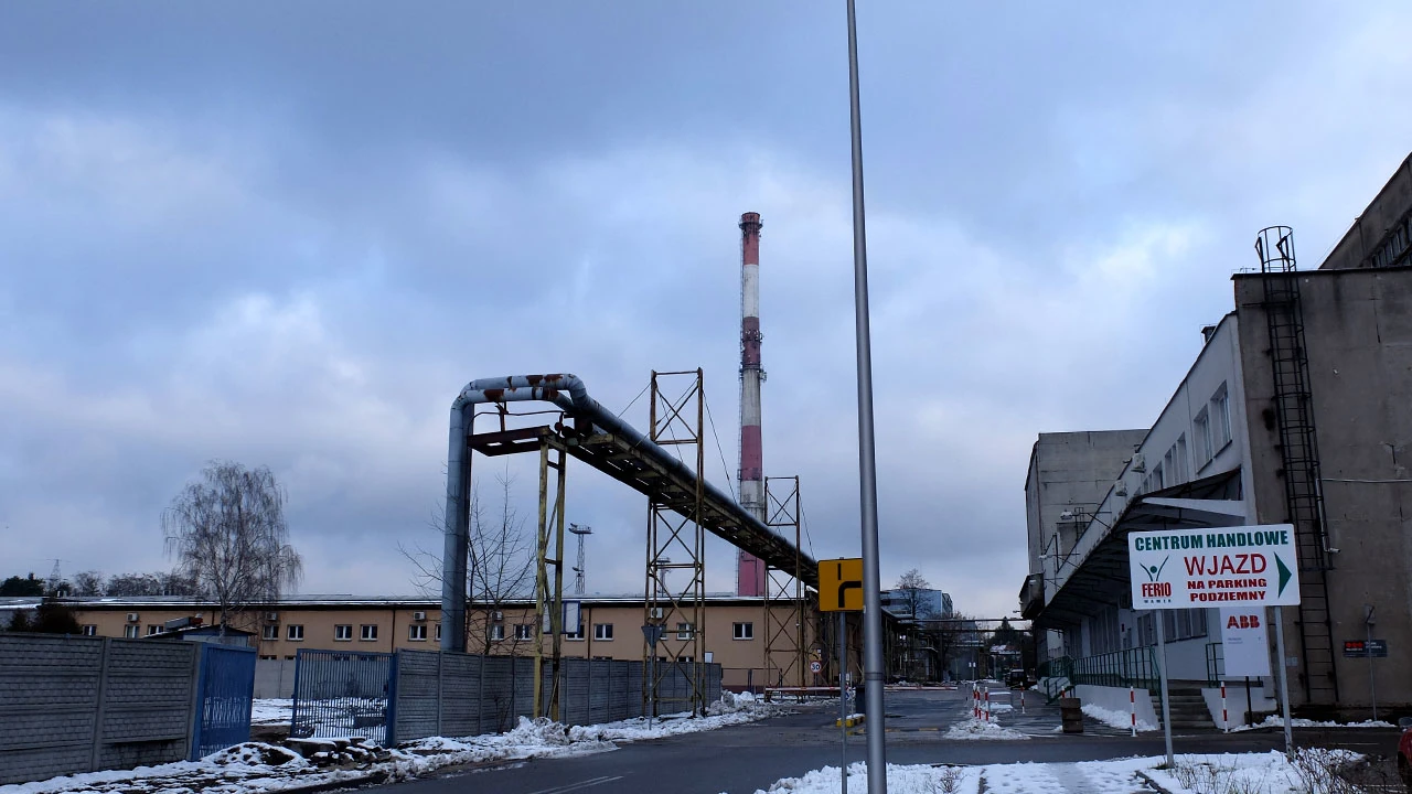 Zwoleńską jedziemy do Traktu Lubelskiego, a potem Skalnicową do Wału Miedzeszyńskiego. Dym z komina siekierkowskiej elektrociepłowni układa się w serduszko.