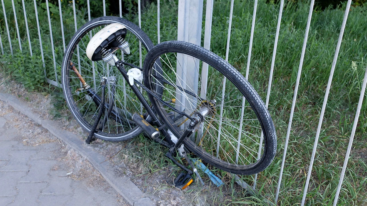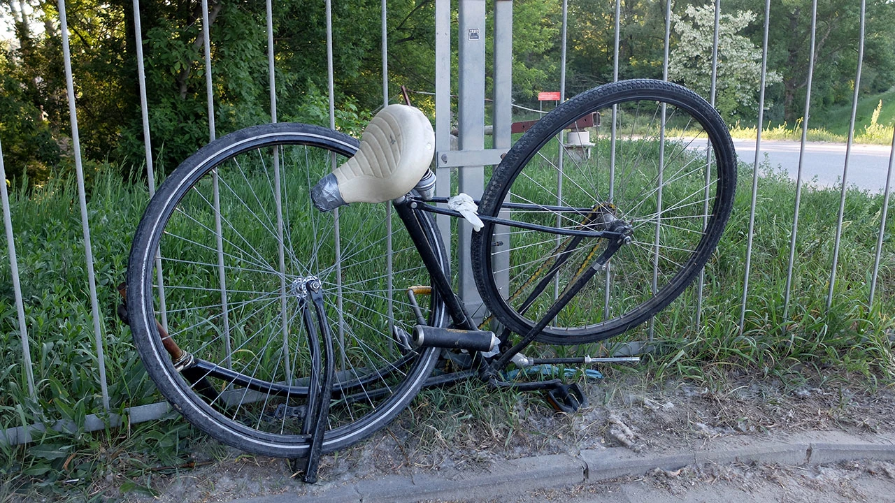 Jedziemy do Wału Miedzeszyńskiego i Mostu Siekierkowskiego. Zjeżdżamy na Wał Zawadowski. Dawno tu nie byliśmy, a kiedyś to był jeden z naszych ulubionych kierunków. Natykamy się na zaparkowane resztki jakiegoś biednego roweru.