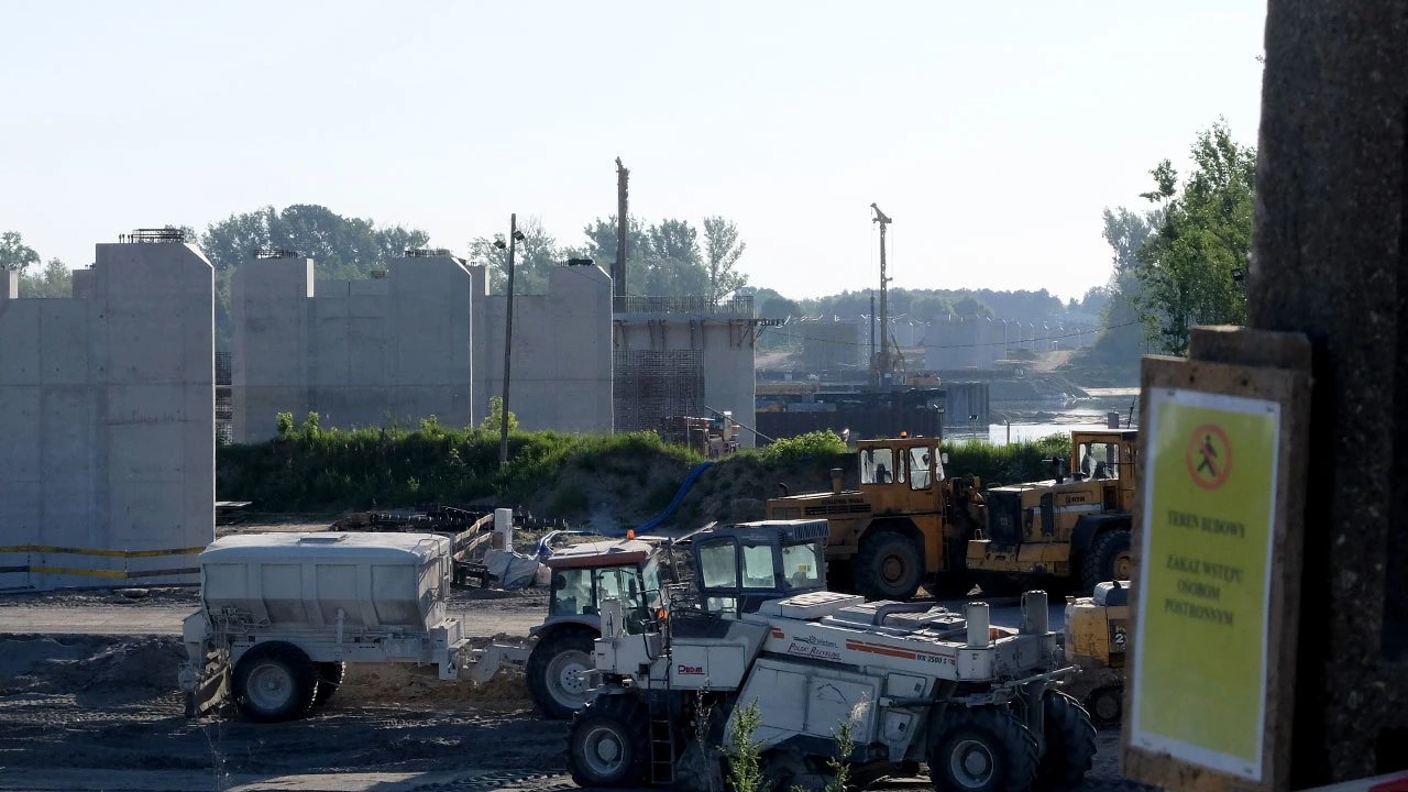 Gdzieś na wysokości Zawad trafiamy na wielki plac budowy. Buduje się południowa obwodnica Warszawy.
