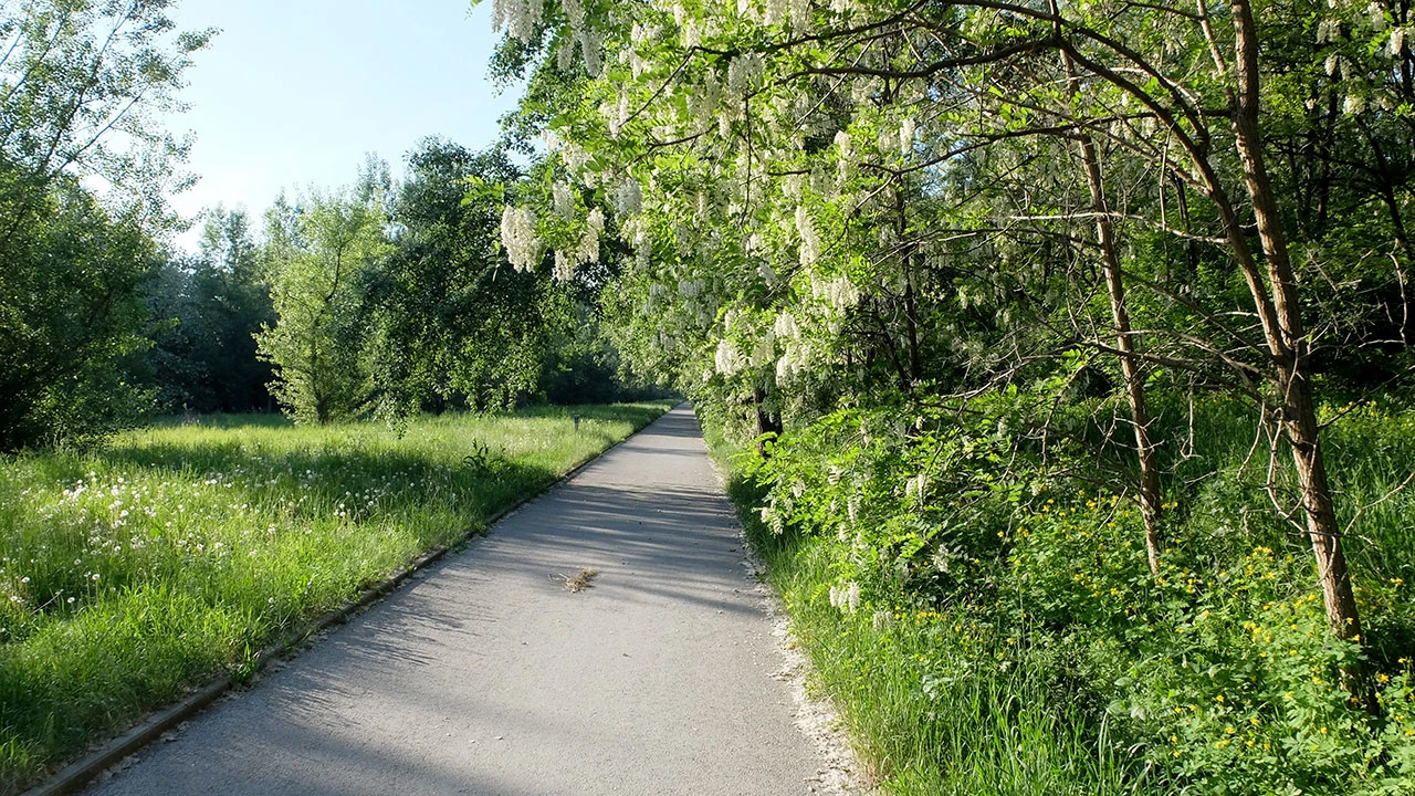 Nad głową turkoczą nam paralotnie, a my dojeżdżamy do Jeziorki, rzeczki, która przepływa przez Konstancin.