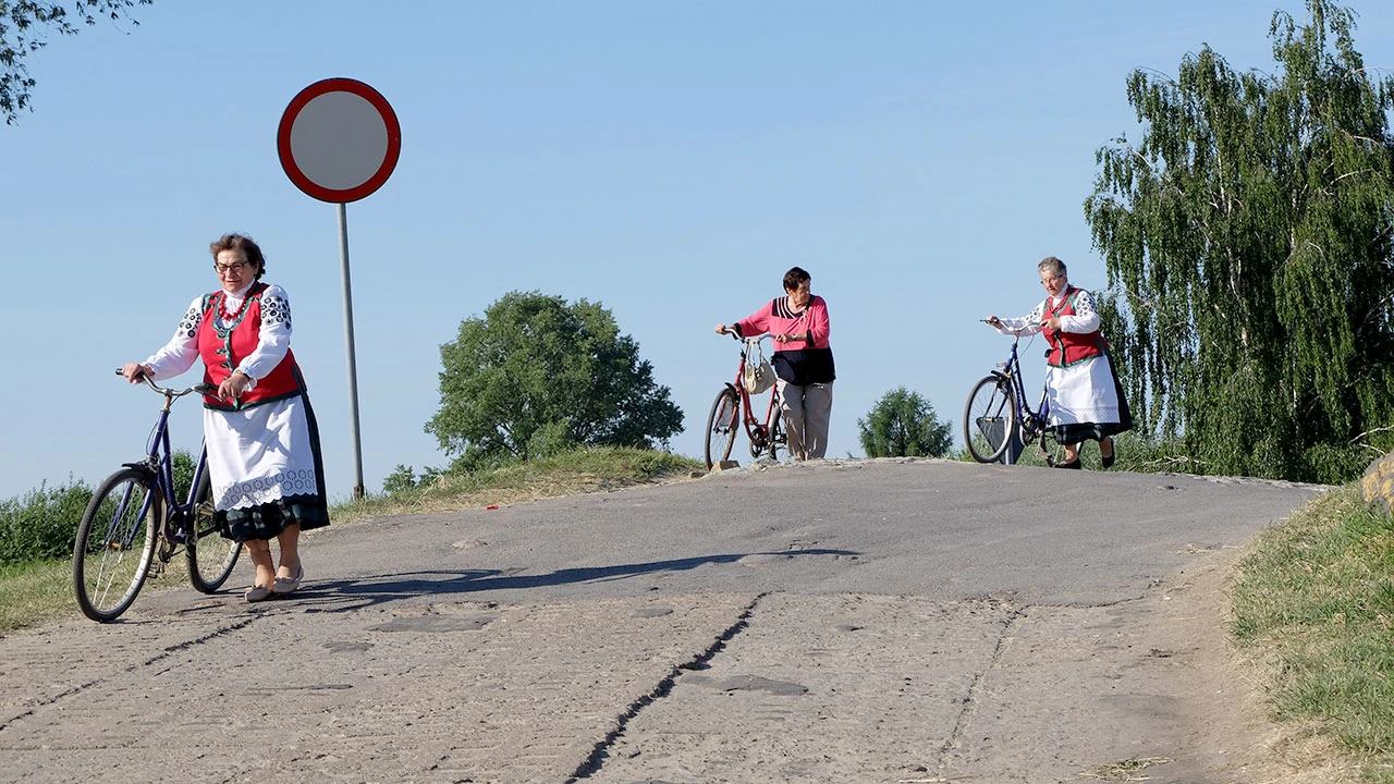 W okolicach Gassów spotykamy odświętnie ubrane panie. Co więcej, panie są na rowerach.