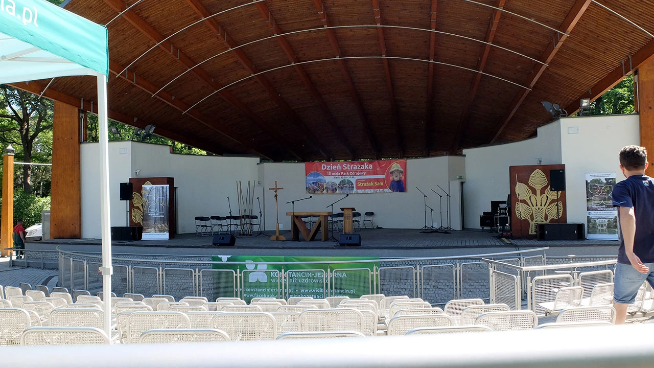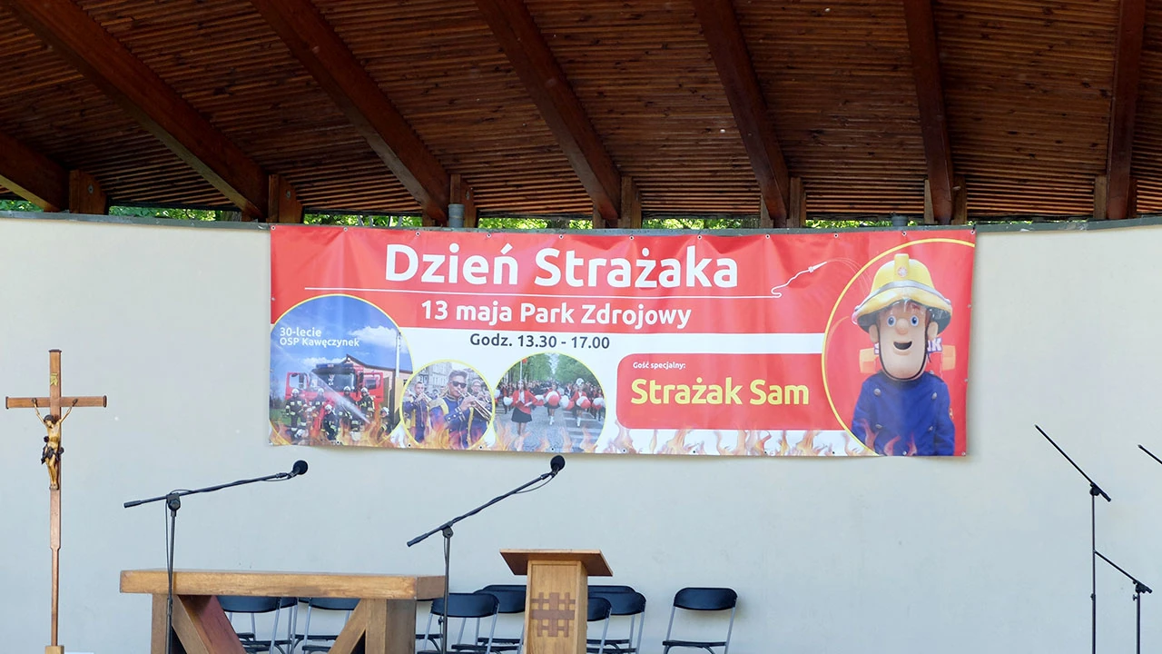 W parku odbywa się festyn na Dzień Strażaka. W amfiteatrze odbędzie się msza polowa.