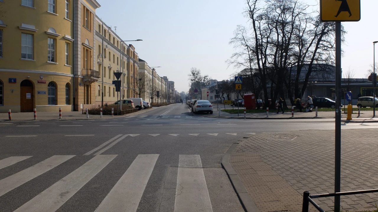 Wjeżdżamy jeszcze w Chodakowską, aby trochę potropić tory, od których zaczynaliśmy spacer przy szpitalu na Szaserów. Malownicze są te rozjazdy, trochę jak z makiety w Składnicy Harcerskiej na Marszałkowskiej. A po drugiej stronie torów jest odnowiony budynek, kiedyś technikum kolejowego. Ciekawe co tam teraz jest?