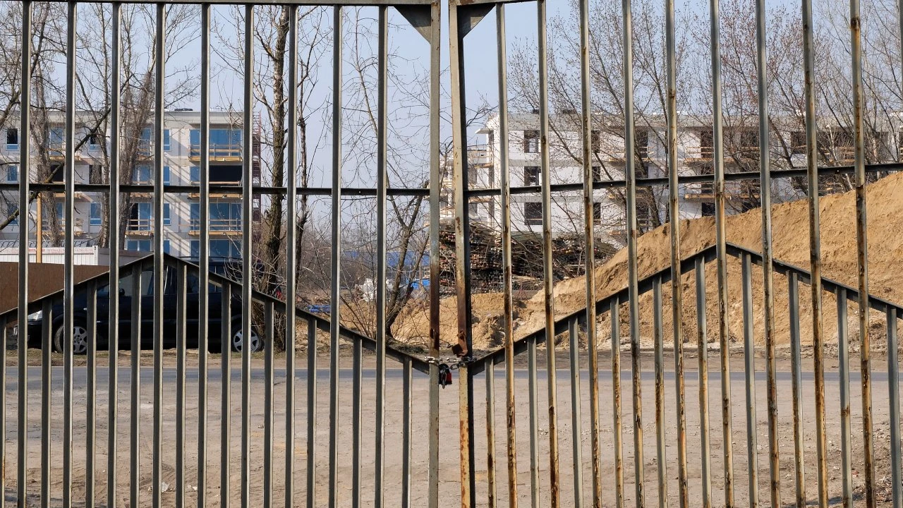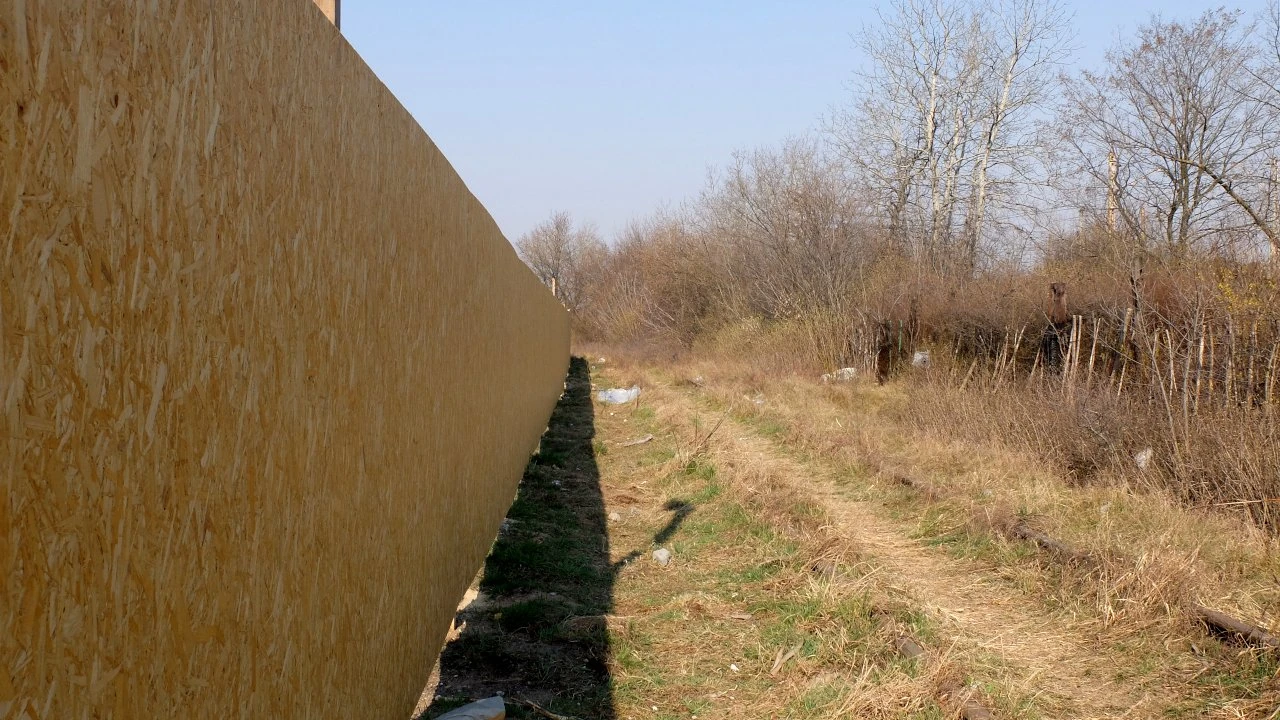 Mijamy płot osiedla i jedziemy w cieniu płotu kolejnej, a może tej samej budowy.