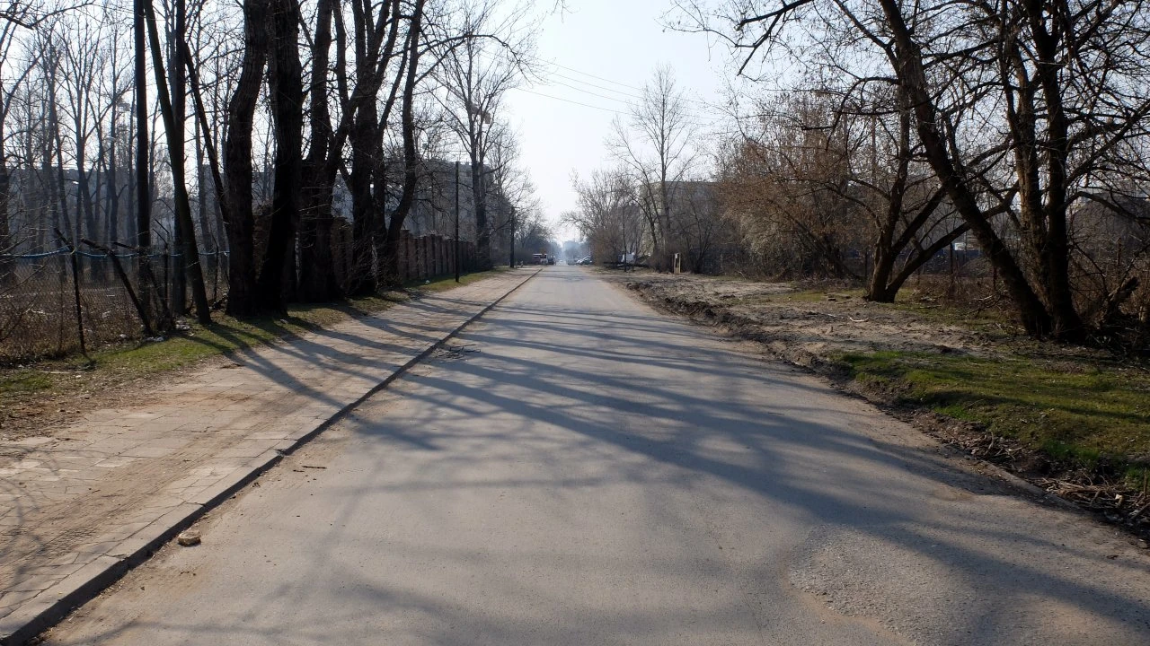 Cofamy się w stronę torów i wjeżdżamy w równoległą do nich uliczkę wewnętrzną na wysokości Podskarbińskiej 51. Widać po nawierzchni z kocich łbów, że ulicę wytyczono dawno, może nawet przed wojną. Jak to przy torach, stoją tu jakie kolejowe budynki, nawet w dobrym stanie. Jest kawał jakiegoś starego muru i pusty plac z tablicą Huty Ostrowiec. Pomieszanie przeszłości, zaplecza i obnażenia.