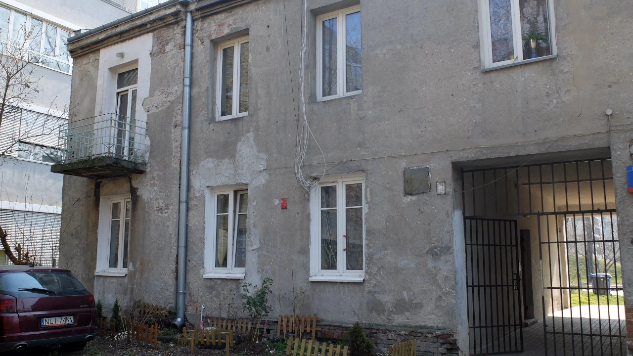 Wjeżdżamy i okazuje się, że za kamienicą jest ulica – to Nowińska. A na niej tylko dwa domy i opuszczony sklep. Jakbyśmy weszli w jakiś inny obszar czasu. Brama domu zadziałała prawie jak teleport. Już po wycieczce uświadamiamy sobie, że uliczką, w którą wjechaliśmy od Chodakowskiej to też Nowińska. Przed wojną w części biegła jak dzisiejsza Żupnicza.