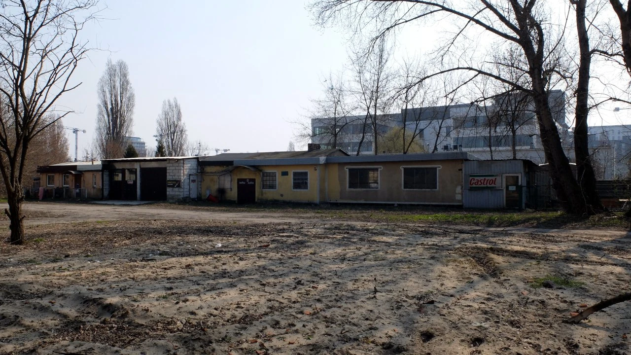 Jesteśmy na ternie dawnych zakładów, magazynów, czegoś przemysłowego. Teraz już wygolonego, pewnie pod kolejne bloki.