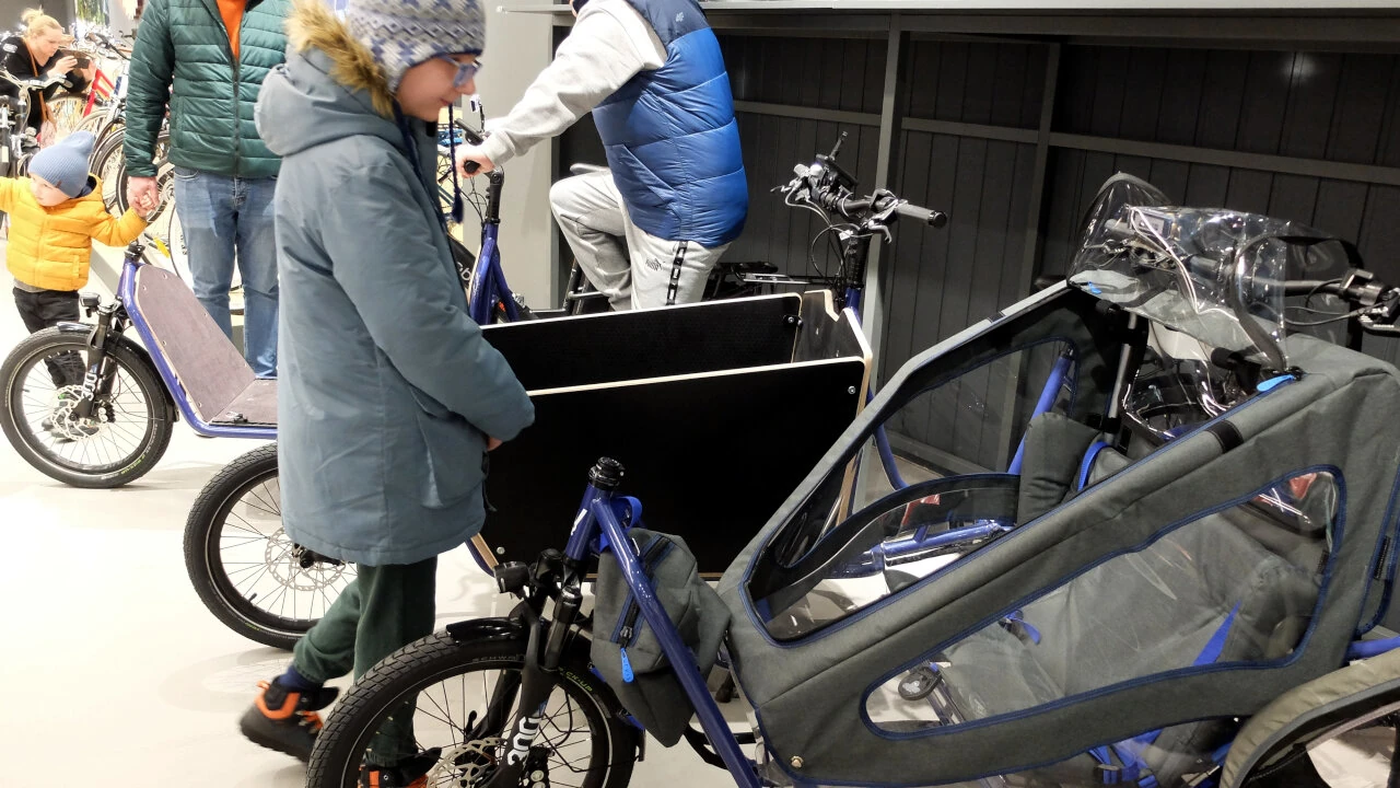 Były też interesujące nas rowery cargo i przyczepki. Chcąc wozić nie tylko siebie albo przewozić duże ładunki, można tu trochę powybierać.