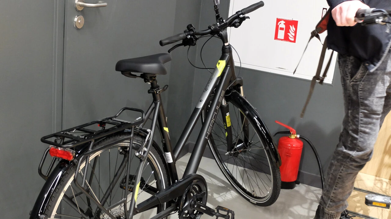 Przy wejściu jednak lekki wstyd. Jedyne stojaki to wyrwikółka renomowanej firmy. Czemu one tu są?