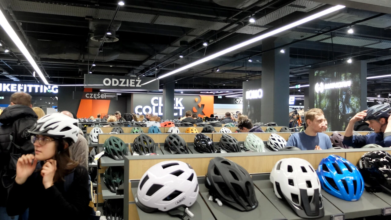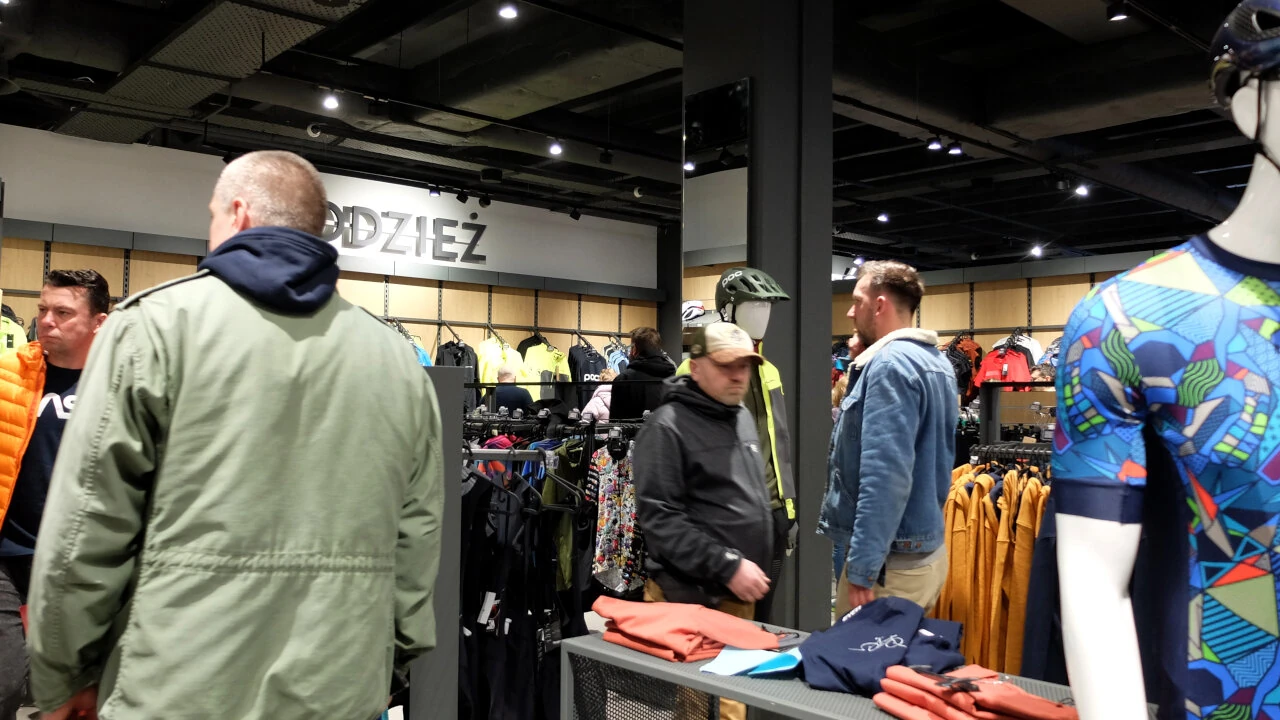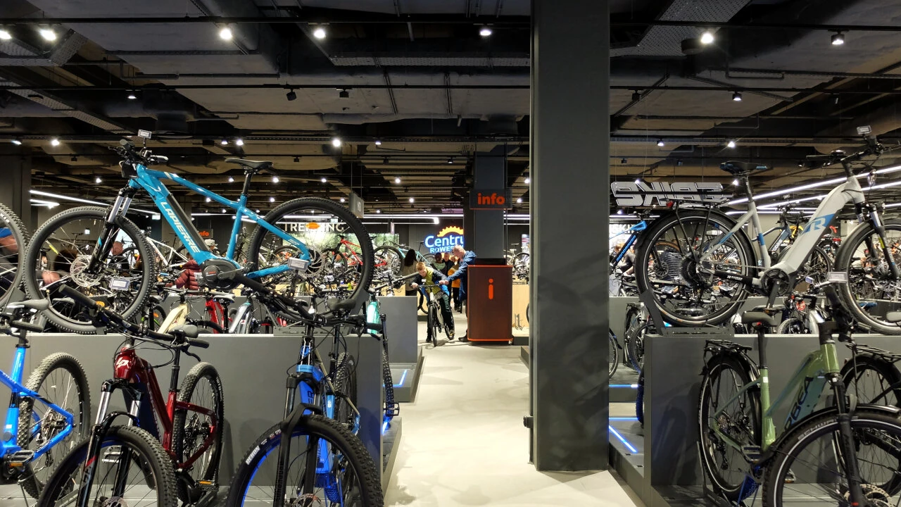 Wchodzimy do środka, tam tłum ludzi. Widać rowerstwo jest w naszym city popularne. Pierwsze wrażenie jest niesamowite. Jakbyśmy byli na targach rowerowych, a nie w sklepie. A nawet lepiej niż na targach, takie tu bogactwo.