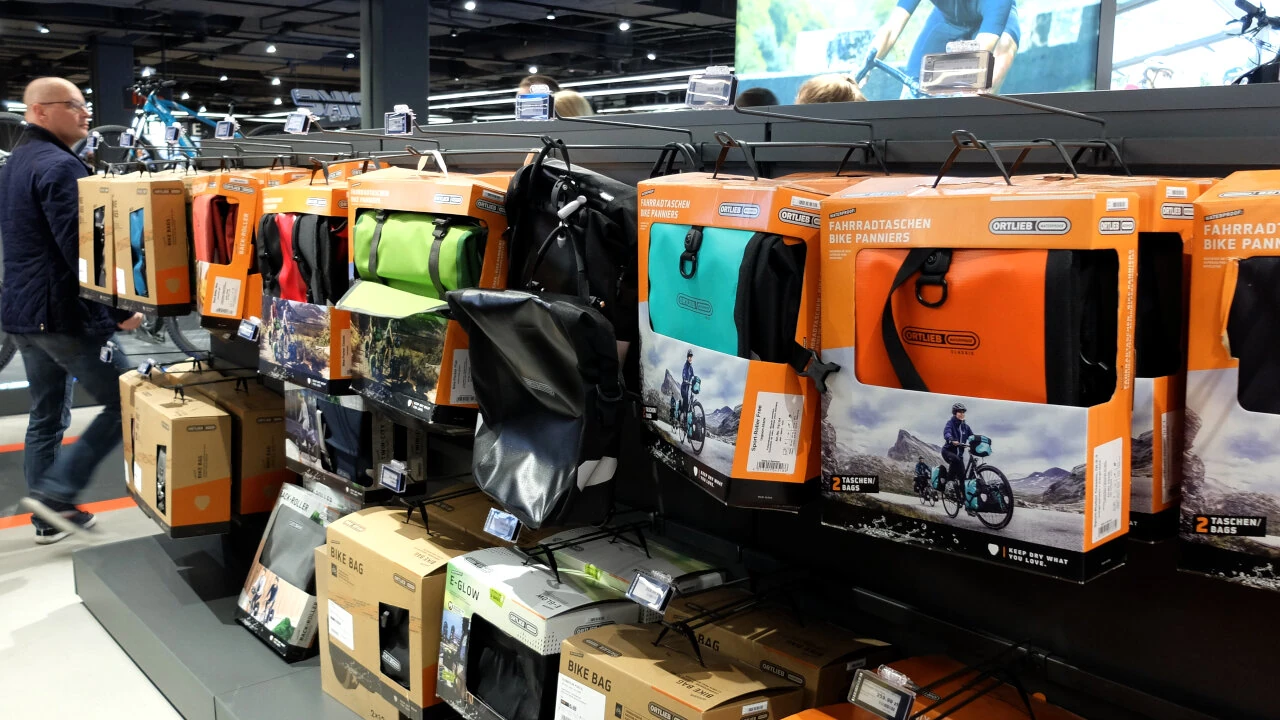 Są też interesujące nas sakwy, bardzo poważny wybór, w tym Ortlieb, których obaj używamy na co dzień. Można też kupić dętki, koła, opony, siodła.
