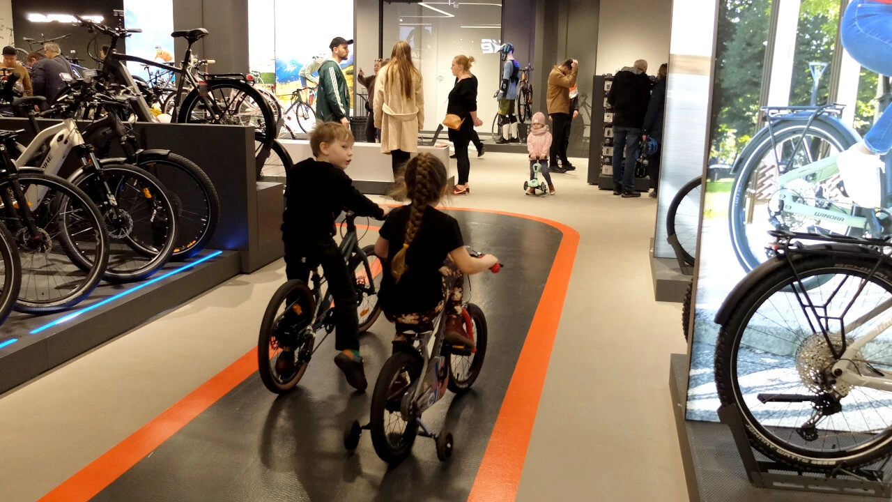 Co prawda reklamowany tor testowy jest po prostu namalowaną ścieżką, jednak fajnie, że można sobie pokręcić. Wiadomo, kupowanie roweru bez przymierzenia się nie ma sensu.