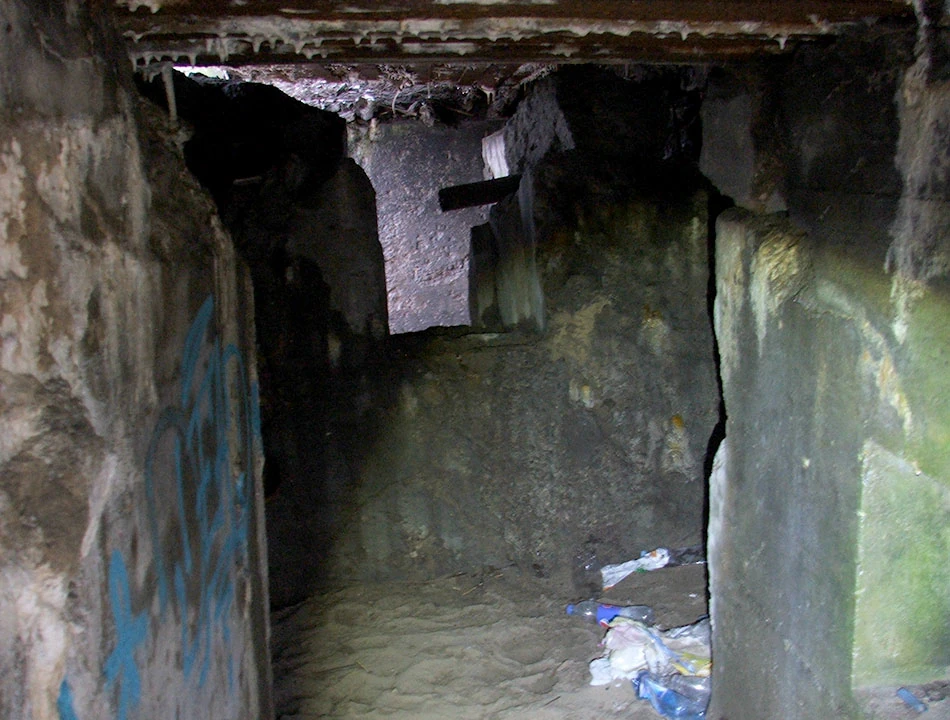 Wjeżdżamy do lasu czymś co na mapie jest ulicą. W rzeczywistości jest piaszczystą drogą. Rzecz jasna cywilizacja jest wokół – wszędzie tu mieszkają ludzie, w końcu to teren Sulejówka. Natykamy się na coś, co przypomina bunkier; teraz to raczej imprezowania.