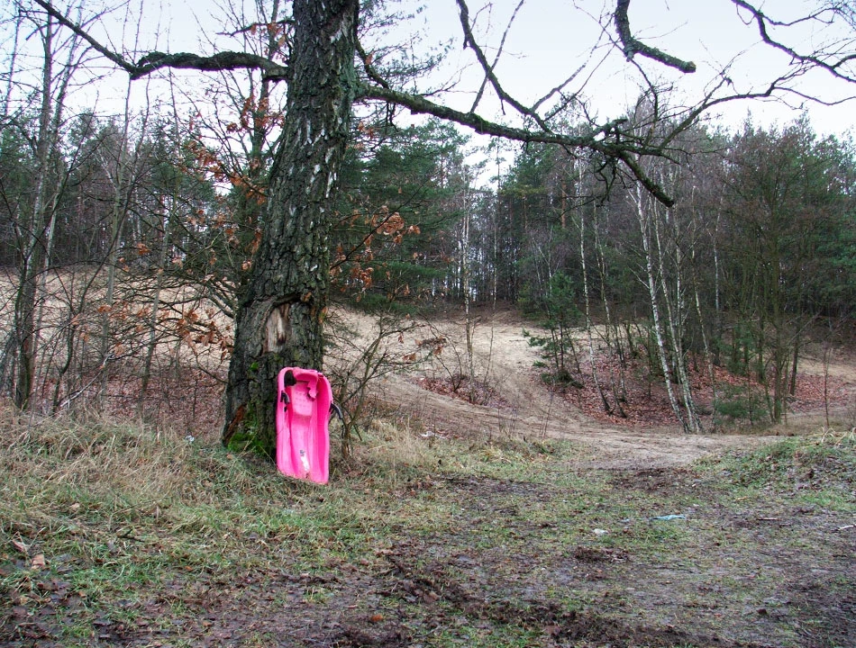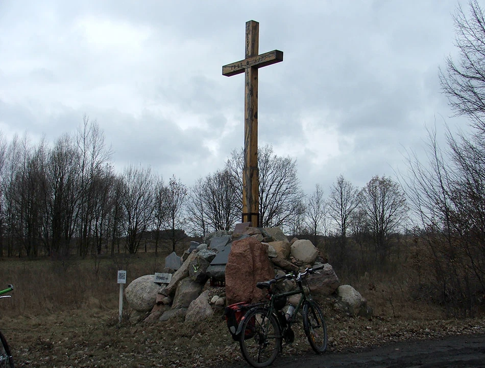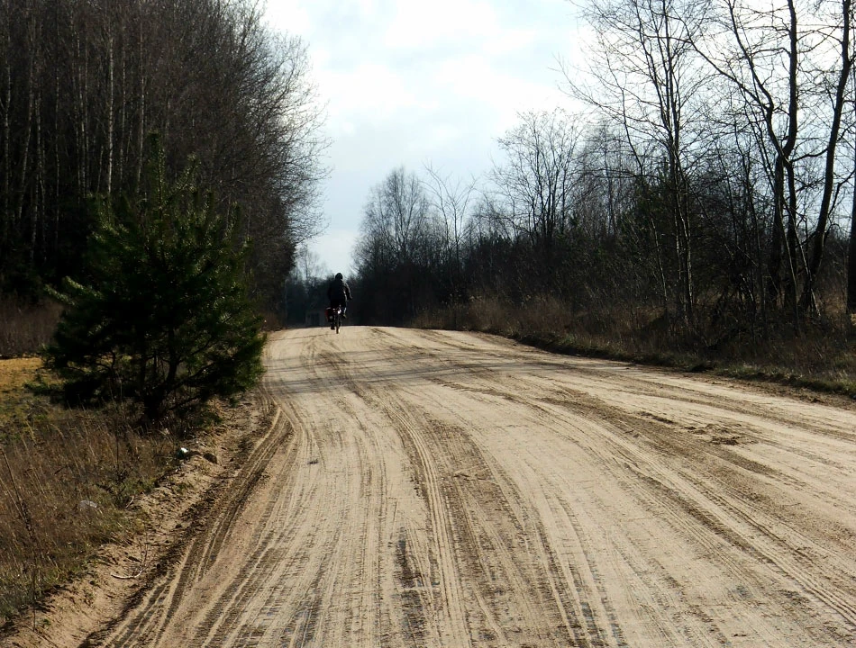 Dzisiejsza trasa to taki mały cross. Co prawda sporo jest jazdy po szosach, jednak co najmniej połowa dróg to piachy i piaseczki. W dodatku, wbrew porze roku, trakty są rozmiękłe i grząskie. Trafiają się nam też całkiem nierozpoznawalne elementy ludzkiej aktywności. Do czego służą pomarańczowe rury wbite na sztorc w ziemię?