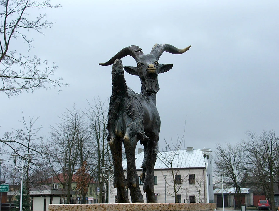 Jedziemy na rynek. Sympatycznie wygląda herb miasta, czyli koziołek. Rynek jest zadbany, wokół trochę starych zabudowań.