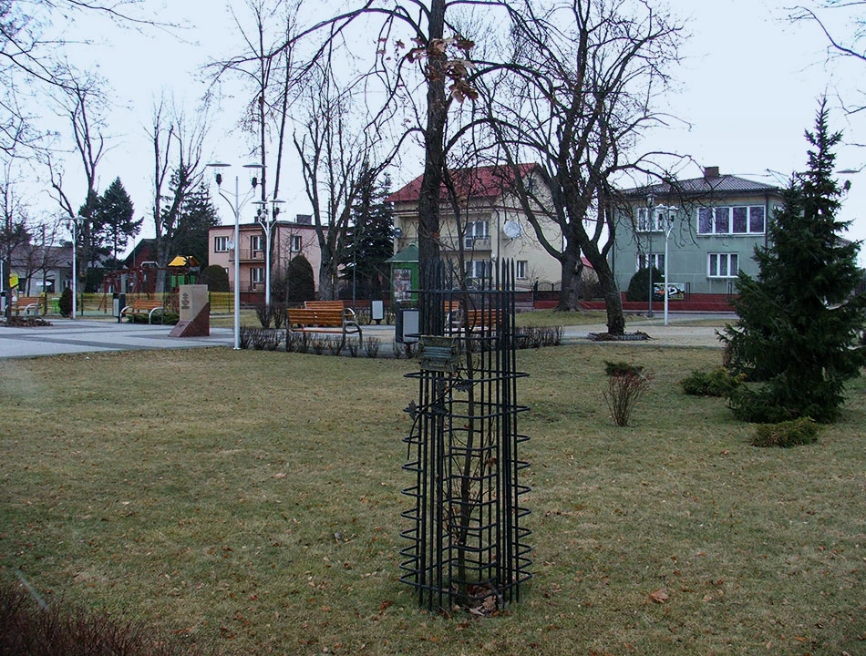 Na rynku, wkomponowane w młode drzewka, umieszczono płyty poświęcone pomordowanym w Katyniu. Nie bardzo wiemy czemu tutaj? Czy może jest podobnie jak z krzyżem wołyńskim?