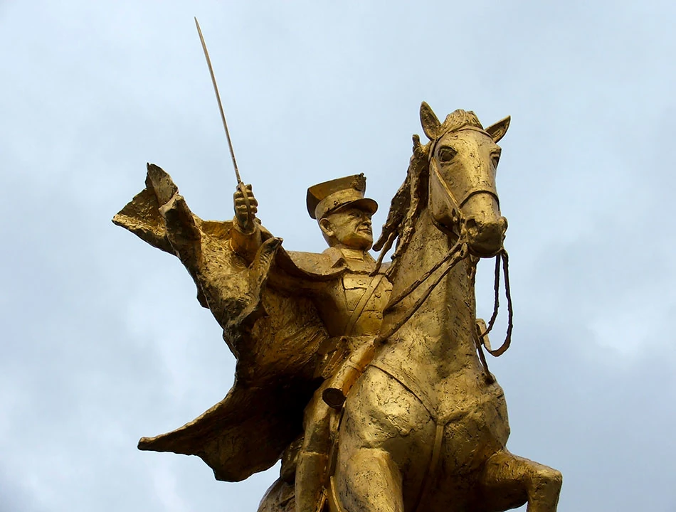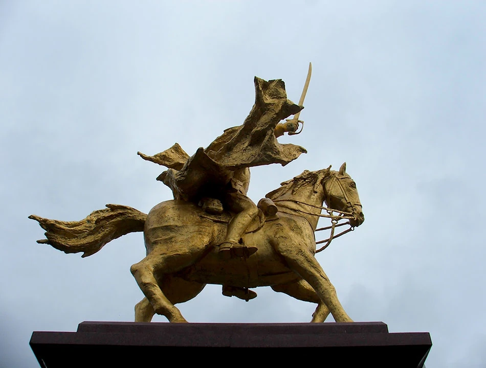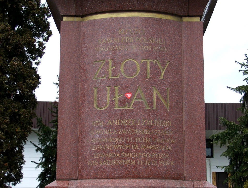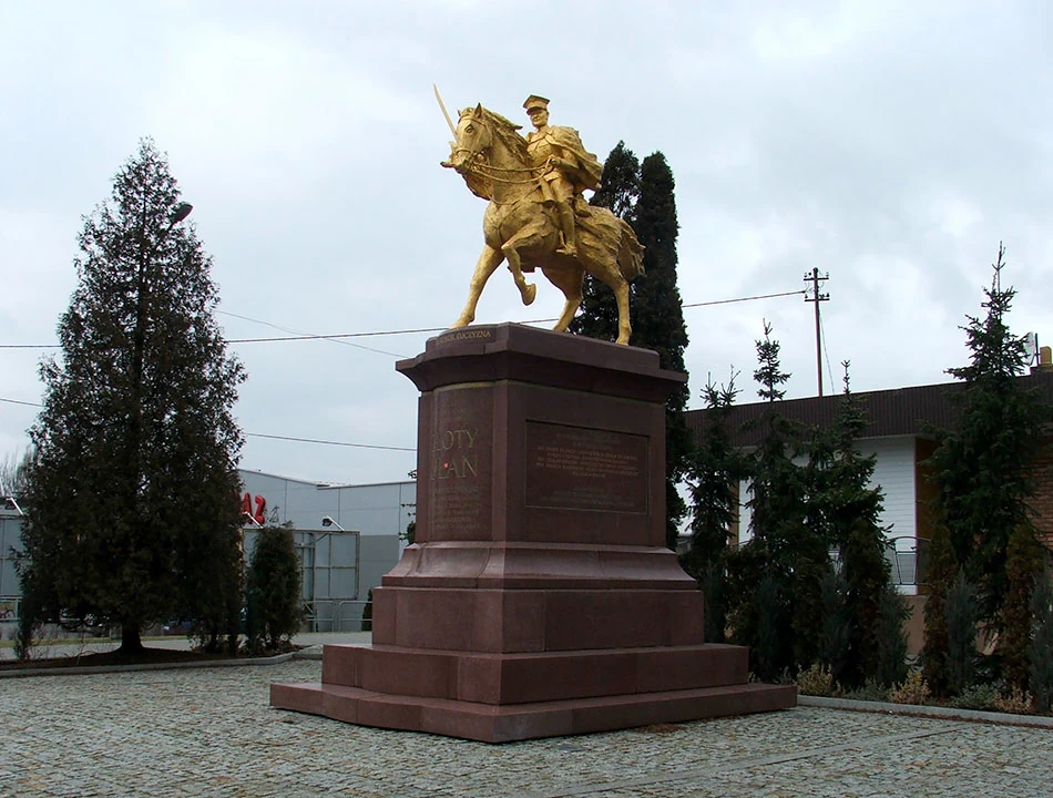 Obok rynku znajdujemy coś, co powala. Pomnik złotego ułana. Pomnik ma osiem metrów wysokości i waży 30 ton, odlany jest z pozłacanego brązu i osadzony na cokole z czerwonego granitu. Wiadomo kto ufundował pomnik. To syn rotmistrza Andrzeja Żylińskiego, który 12 września 1939 roku dowodząc szarżą 4 szwadronu 11. Pułku Ułanów rozpoczął bitwę pod Kałuszynem. Pomnik postawił syn ku czci ojca i wszystkich polskich ułanów walczących podczas II wojny światowej.