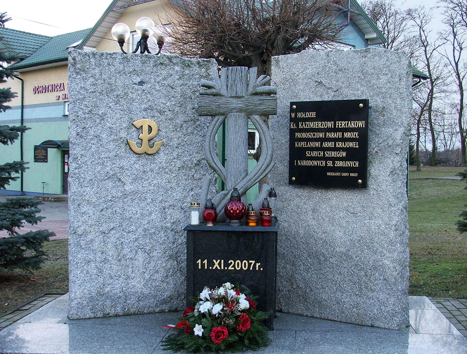 Przed Kałuszynem, w Kazimierzowie, widzimy krzyż upamiętniający rzeź polskiej ludności na Wołyniu. Fundatorem jest właściciel pobliskiego gospodarstwa agroturystycznego. Czemu jednak ten krzyż stoi w tym miejscu? Tylko ze względu na fundatora.
