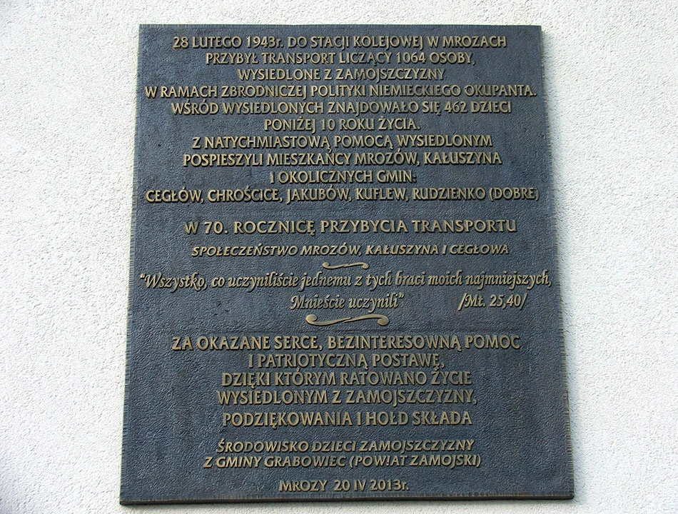 Wjeżdżamy do Kałuszyna. Wita nas ogromny kościół Wniebowzięcia Najświętszej Maryi Panny. I doznajemy dużego zadziwienia: przed wejściem, na ścianie kościoła wisi macewa i liczby mieszkańców żydowskich i polskich w 1939 roku. Nigdy, w żadnym polskim kościele, nie widzieliśmy czegoś takiego. W niedawno odwiedzanej Warce, na jednym z pomników, zapomniano o zamordowanych żydowskich mieszkańcach. W Kałuszynie na przestrzeni lat 1827-1921 ludność pochodzenia żydowskiego stanowiła około 80% mieszkańców. Dzisiaj w Kałuszynie mieszka około 3.000 osób, przed wojną około 10.000.