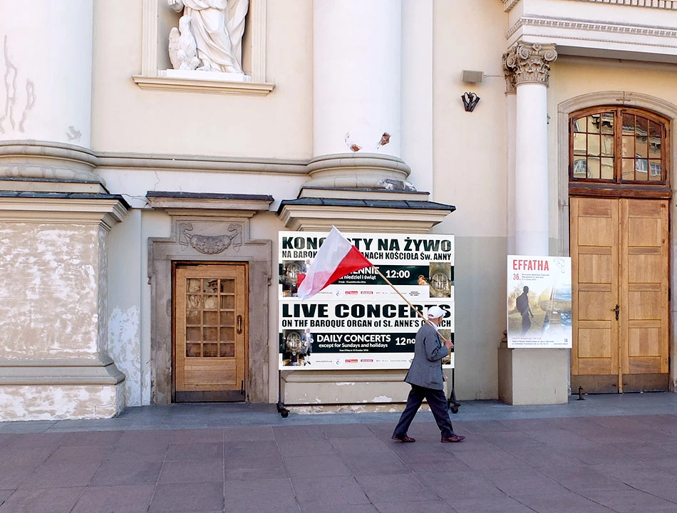 Zygmunt III Waza odział się w kibicowskie barwy. Na słupach wisi jeszcze wspomnienie szczytu NATO. Zastanawiamy się, dokąd 10 lipca rano może zmierzać pan ze szturmówką.