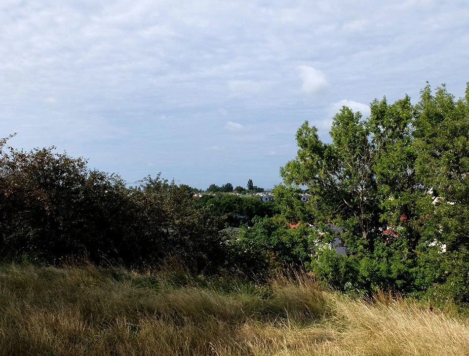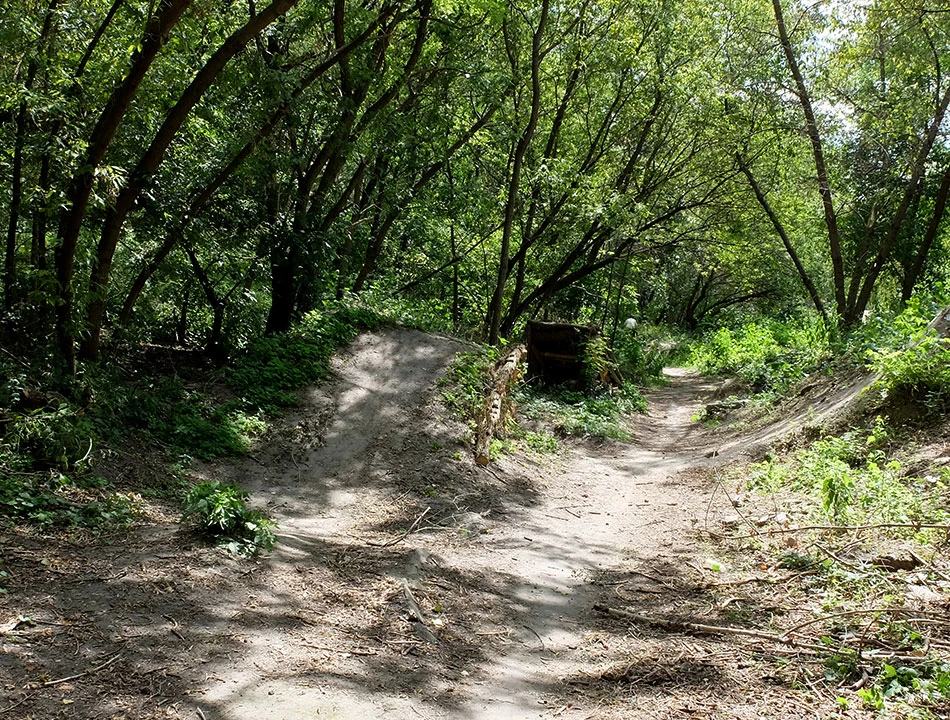 Prymasa Tysiąclecia, Bohaterów Warszawy i Drawską dostajemy się do Parku Szczęśliwickiego. Nasz kolejny cel — Górka Szczęśliwicka powstała w wyniku kombinacji znanych w Warszawie technik górotwórczych: tworzą ją ruiny Warszawy i składowane śmieci. Można pozjeżdżać na nartach na igielicie lub na śniegu. Stok jest czynny cały rok. Zjeżdżać można też na pontonach. Zimą działa wyciąg, czy także latem — nie zauważyliśmy. W ogóle na ostatnich metrach przed szczytem wpadliśmy w jakieś chaszcze i zatrzymał nas płot ze stalowej siatki. I słabo było widać, ale to normalne przy tak trudnym szczycie. Oczywiście o jeździe nie było mowy, rowery wpychaliśmy z mozołem.