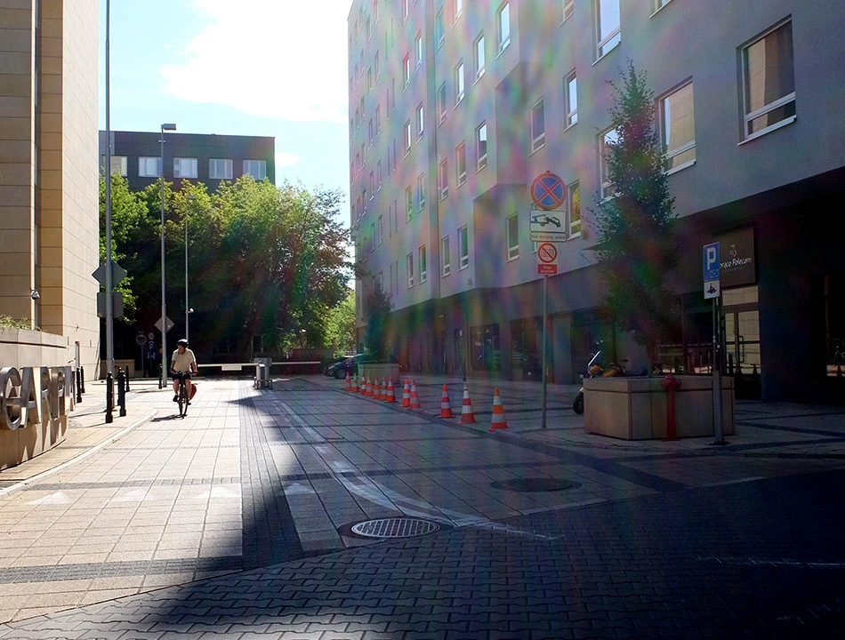 Postanawiamy zaatakować szczyt z rozpędu. Ale warunki są przeciw nam. Z Wybrzeża Gdańskiego rozpoczynamy wspinaczkę brukowaną, nomen omen, ulicą Boleść. Potem skręcamy w równie nierówną Brzozową. Wysokość gwałtownie rośnie. Mijamy Centrum Interpretacji Zabytku Stare Miasto i dom, w którym Pola Gojawiczyńska napisała „Dziewczęta z Nowolipek”.