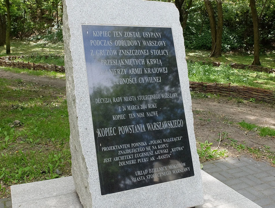 I to wzniesienie powstało z gruzów zniszczonej Warszawy. Zwożono tu także śmieci. O kopcu mówiono „Zwałka”, „Śmieciara”, „Kopiec Czerniakowski”. Z inicjatywy ppłk. Eugeniusza Ajewskiego ps. „Kotwa” uporządkowano kopiec, a na początku XXI wieku nadano mu dzisiejszą nazwę.
