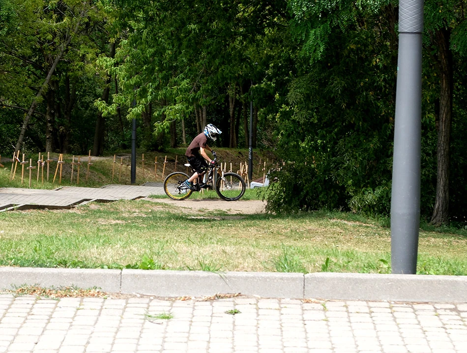 Skręcamy w Pileckiego i gdzieś na wysokości Kazury szukamy naszego kolejnego celu: Monte Kazury zwanej też Górą Trzech Szczytów. To pierwszy dzisiaj tak rozległy szczyt. Nie wiemy, na którą część się wspinać, by rzeczywiście mieć zaliczoną górę. Potem może okazać się, że ktoś będzie robił nam wymówki czy kwestionował osiągnięcia. Tym razem nawet nie próbujemy jazdy, od razu pchamy maszyny na górę. Zastanawiamy się, czy jednak nie powinniśmy zacząć przygotowywać się kondycyjnie do wspinaczki. Tym bardziej że przy Monte Kazury zainstalowano specjalne urządzenie po temu.