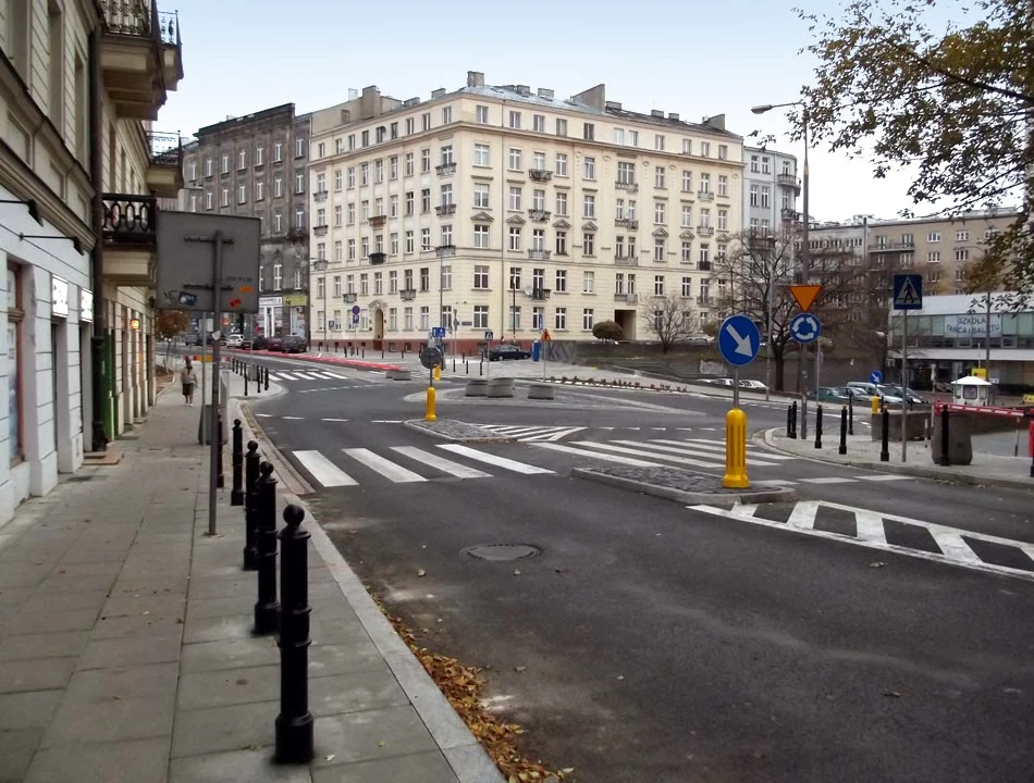 Skrótem obok Liceum Zamoyskiego dojeżdżamy do ulicy Kopernika. A tam na skrzyżowaniu z Tamką wyrosło rondko, które powinno ułatwić jazdę także rowerzystom. Na pobliskim skrzyżowaniu Świętokrzyskiej i Nowego Światu ma także powstać rondo. To wartość dodana prac związanych z budową metra.