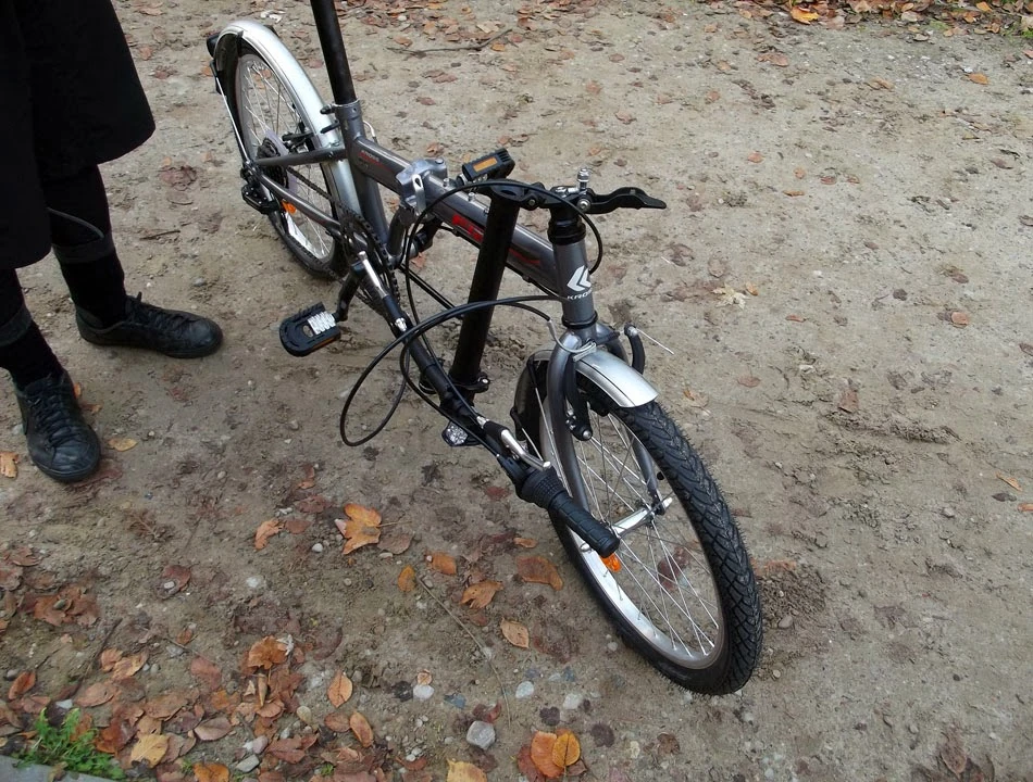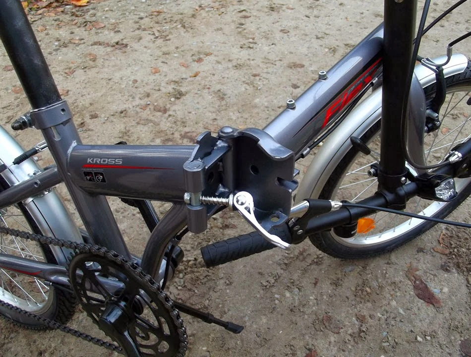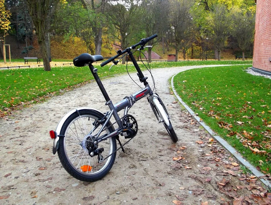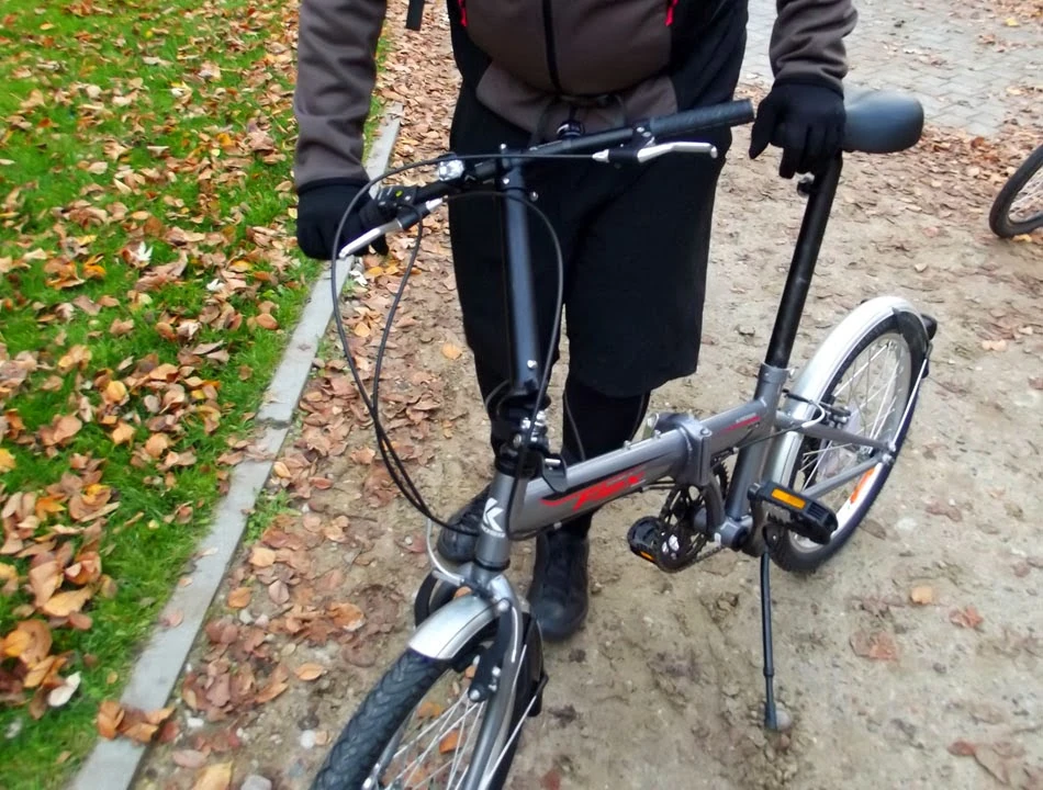 Kross Flex jest składakiem, ma małe kółeczka i wygląda trochę jak rowerek dziecięcy. Po płaskim jedzie się nieźle, ale nawet na niewielkich podjazdach Piotrek musi się sporo natrudzić. Rower nadaje się tylko do miejskiej jazdy. Jednak mimo swoich wad, ma też wiele zalet. Przede wszystkim składa się i mieści się w bagażniku. Poza tym jest zwrotny i lekki.