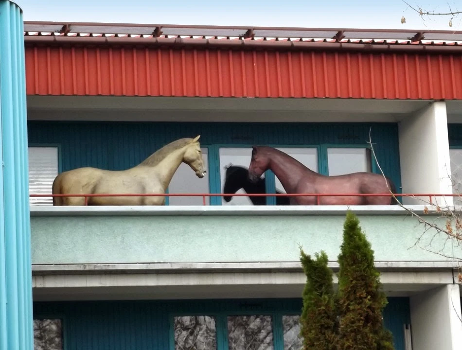 Kręcimy się trochę po Marymoncie. Przy Lektykarskiej Polski Związek Jeździecki straszy końmi.