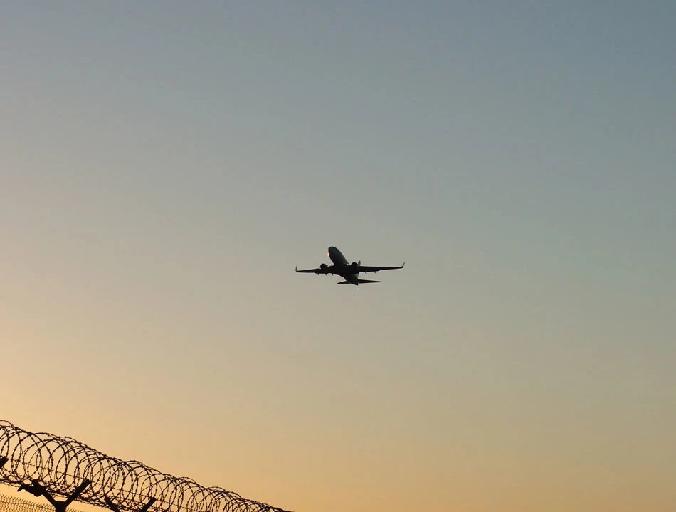 W oddali majaczy terminal Cargo, a my rzucamy długaśne cienie na nowo budowaną drogę.