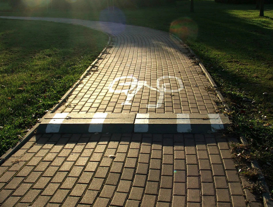 Na skwerze wytyczone są drogi rowerowe. Ktoś jednak przeszarżował umieszczając na nich spowalniające garby – w wersji rowerowej to chyba śpiący strażnicy miejscy.