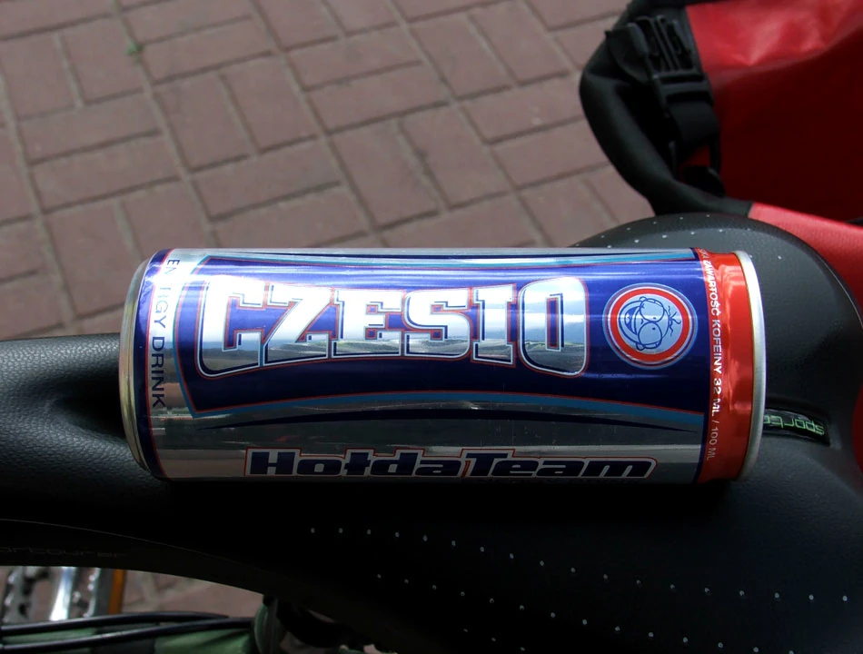Jedziemy przez chwilę drogą 876 i skręcamy w Mokrą w stronę Henryków Urocze. Na rogu Mokrej i Społecznej zahaczamy o sklep spożywczy. Piotrek wzmacnia się Czesiem, urokliwym napojem energetycznym.