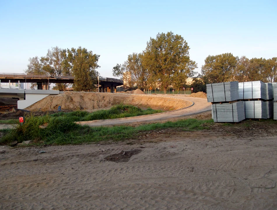 Jadąc nadal wzdłuż Wisły osiągamy Most Północny oficjalnie zwany Mostem Marii Skłodowskiej-Curie. Omijamy łukiem budowę najdłuższej w Polsce podrzecznej rury i po chwili odbijamy w Papirusów, w stronę Parku Młocińskiego. Przejeżdżamy przez park, o tej porze pustawy, z kilkoma dzielnymi joggerami – i już Buraków.