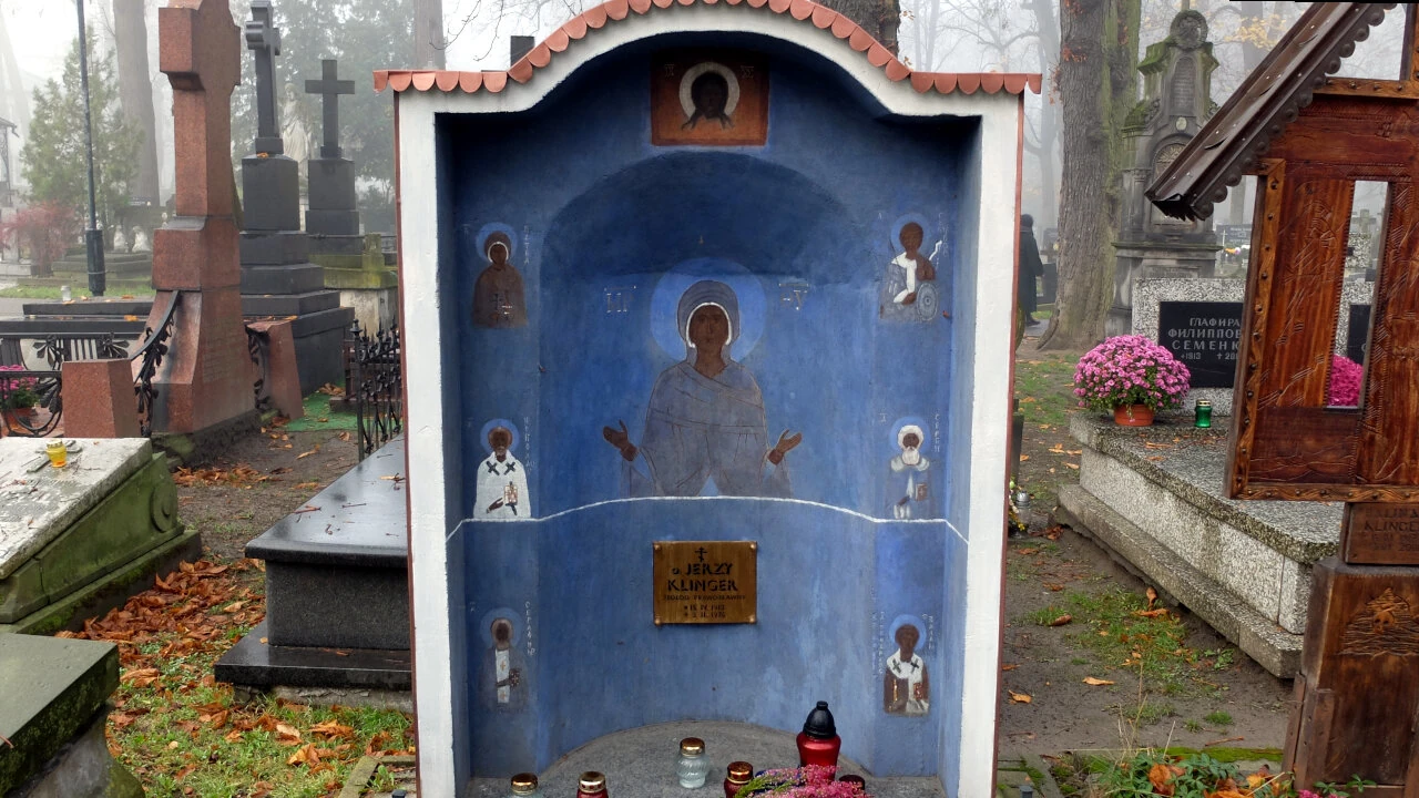 Jedziemy ulicą Kasprzaka do Cmentarza Prawosławnego; Piotrek ma tam rodzinne zobowiązania. Cmentarz powstał na mocy carskiego ukazu z 1834 roku, znoszącego także parafię rzymsko-katolicką przy Kościele św. Wawrzyńca. W 1903 roku na terenie cmentarza wzniesiono cerkiew pod wezwaniem św. Jana Klimaka. Na cmentarzu pochówek znaleźli wyżsi dygnitarze cywilni (w tym prezydent Warszawy Sokrates Starynkiewicz), generałowie i ich rodziny, oficerowie sztabowi, niżsi oficerowie, urzędnicy, bogaci kupcy, żołnierze, mieszczanie, ubodzy i zmarli w przytułkach. Ponadto na cmentarzu spoczęli Gruzini, Ukraińcy, Tatarzy, Romowie, żołnierze ukraińskiej armii atamana Petlury, starowiercy, Ormianie, żołnierze Armii Czerwonej polegli w czasie II wojny światowej i budowniczowie Pałacu Kultury i Nauki.