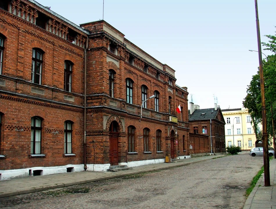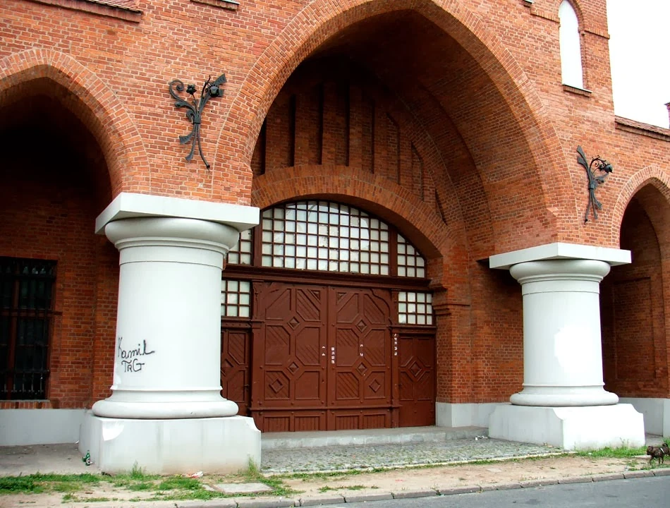 Dojeżdżamy do Targowej, do wielkiej tkalni, do której wiodła monumentalna brama zwana "beczkami Grohmana". Kowlak uparcie jednak twierdzi, że to są szpulki niciane.