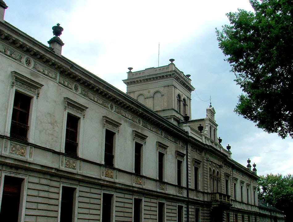 Przy Placu Zwycięstwa oglądamy pałac Scheiblera, gdzie dzisiaj mieści się muzeum kinematografii, a trochę dalej jest szkoła filmowa.