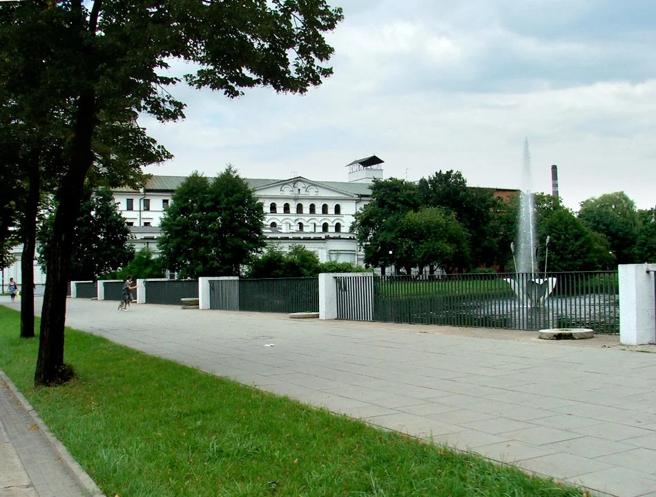 Wracamy w stronę Placu Wolności. Po drodze mijamy Białą Fabrykę Ludwika Geyera. To pierwsza, a może jedyna otynkowana łódzka fabryka. Ciekawe po co Geyer to zrobił? Miał taki kaprys? W Białej Fabryce uruchomiono pierwszą w Królestwie Polskim maszynę parową. W fabryce mieści się Centralne Muzeum Włókiennictwa, a obok skansen architektury drewnianej.