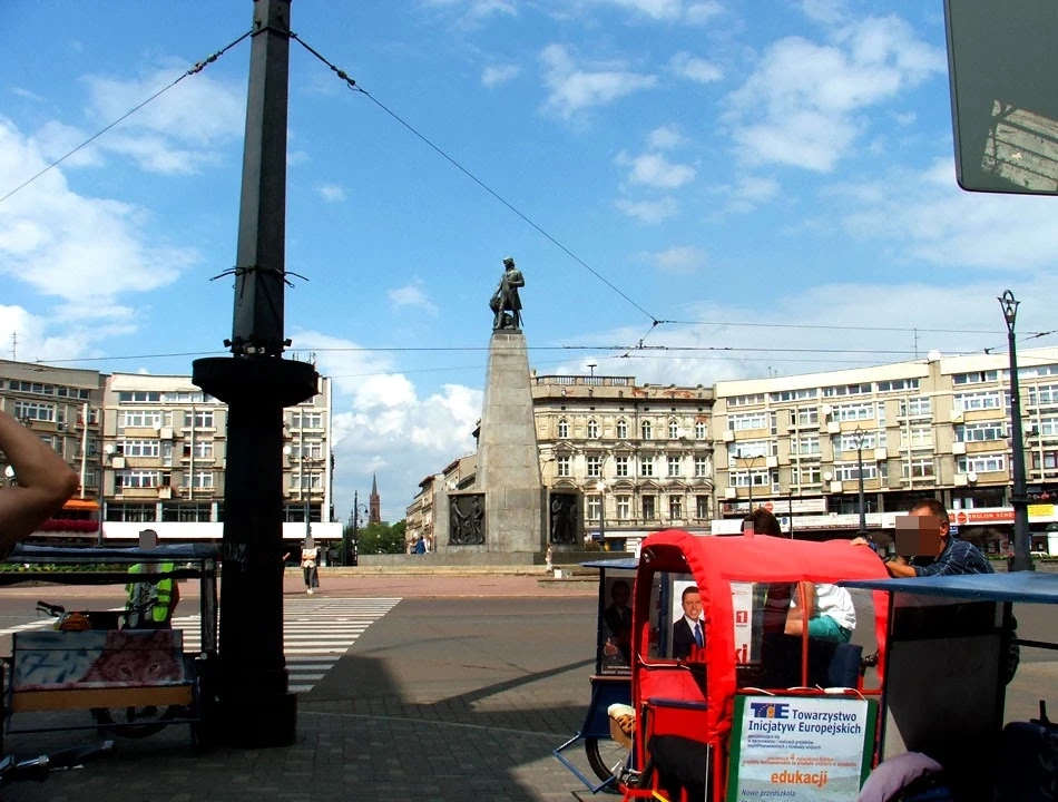 Jedziemy w stronę Placu Niepodległości, gdzie Piotrkowska się kończy (a zaczyna na Placu Wolności). Anegdota z czasów realnego socjalizmu mówiła, że od niepodległości do wolności jest daleka droga; a może na odwrót?
