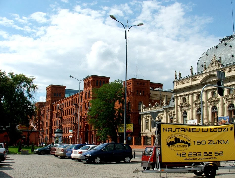 Zachodnią dojeżdżamy do Manufaktury: gigantycznego centrum handlowo-kulturalnego, choć głównie handlowego. Manufaktura powstała na terenie dawnych zakładów Izraela Poznańskiego. W dziewiętnastym wieku znajdowały się tu tkalnie, przędzalnia, farbiarnia, drukarnia tkanin, a nawet budynki mieszkalne dla robotników. Obecnie poza centrum handlowym jest tu także hotel. Jedno z wejść prowadzi przez dawną, główną bramę fabryczną. Nie budzi naszego zachwytu obecne przeznaczenie fabryki, ale na pewno, obok loftów Scheiblera, jest to udany przykład rewitalizacji pofabrycznych zabudowań. W dawnym pałacu Poznańskiego mieści się obecnie Muzeum Historii miasta Łodzi.