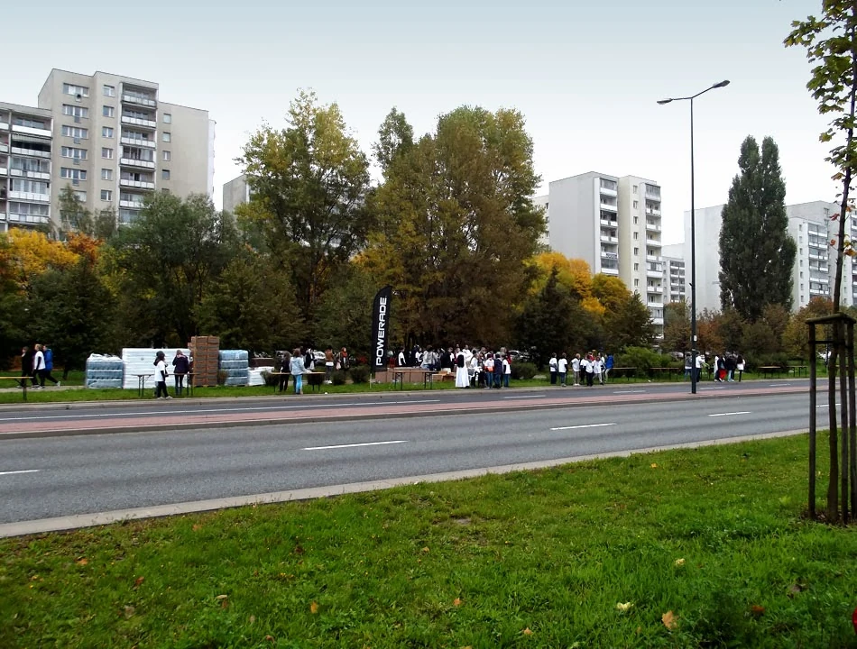 Po drodze mijamy młodzieżową ekipę, która najwyraźniej przygotowuje się do obsługi uczestników Maratonu PZU.