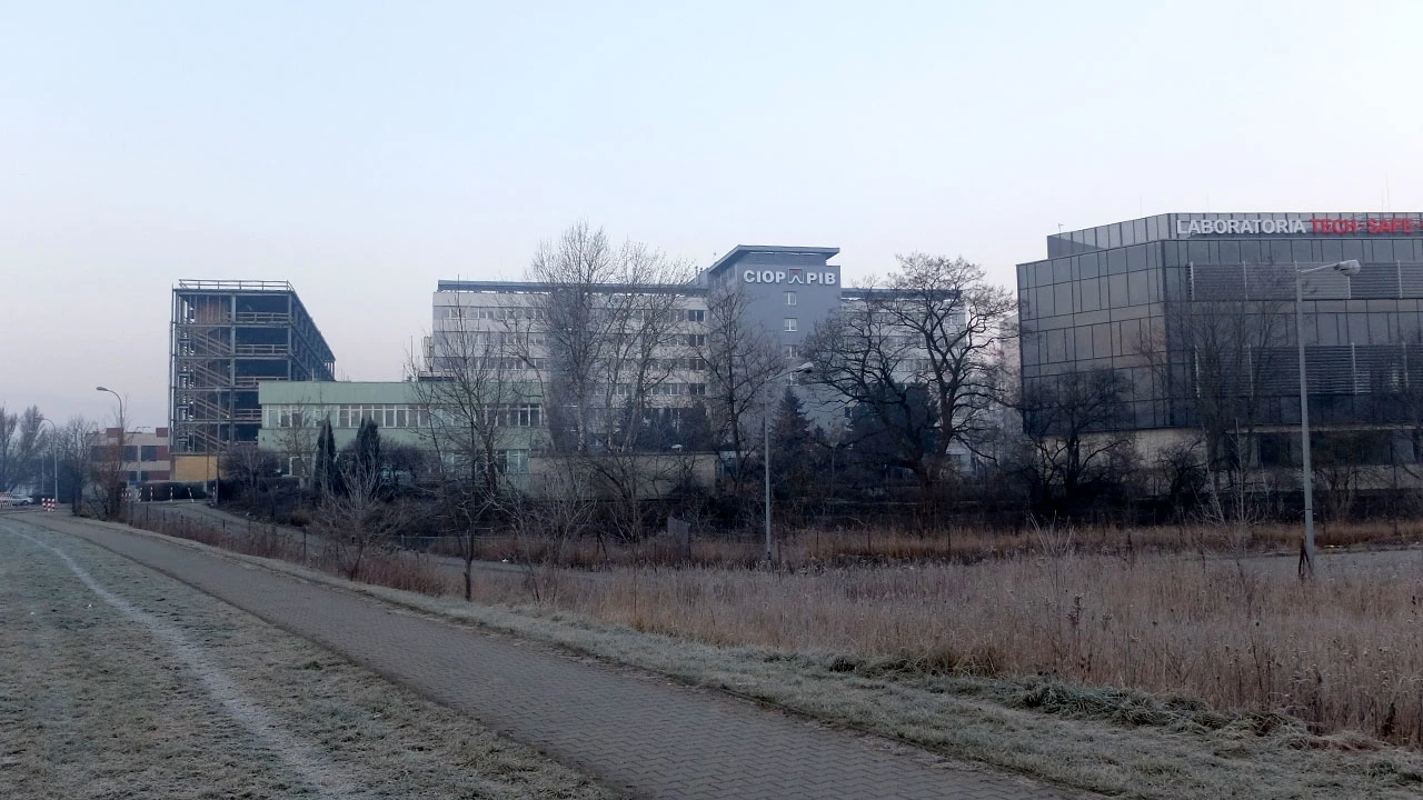 Przed Czerniakowską stoi coś, co Piotrka zawsze frapowało — CIOP PIB — Centralny Instytut Ochrony Pracy — Państwowy Instytut Badawczy. Pociągający skrót kryjący poważną instytucję.