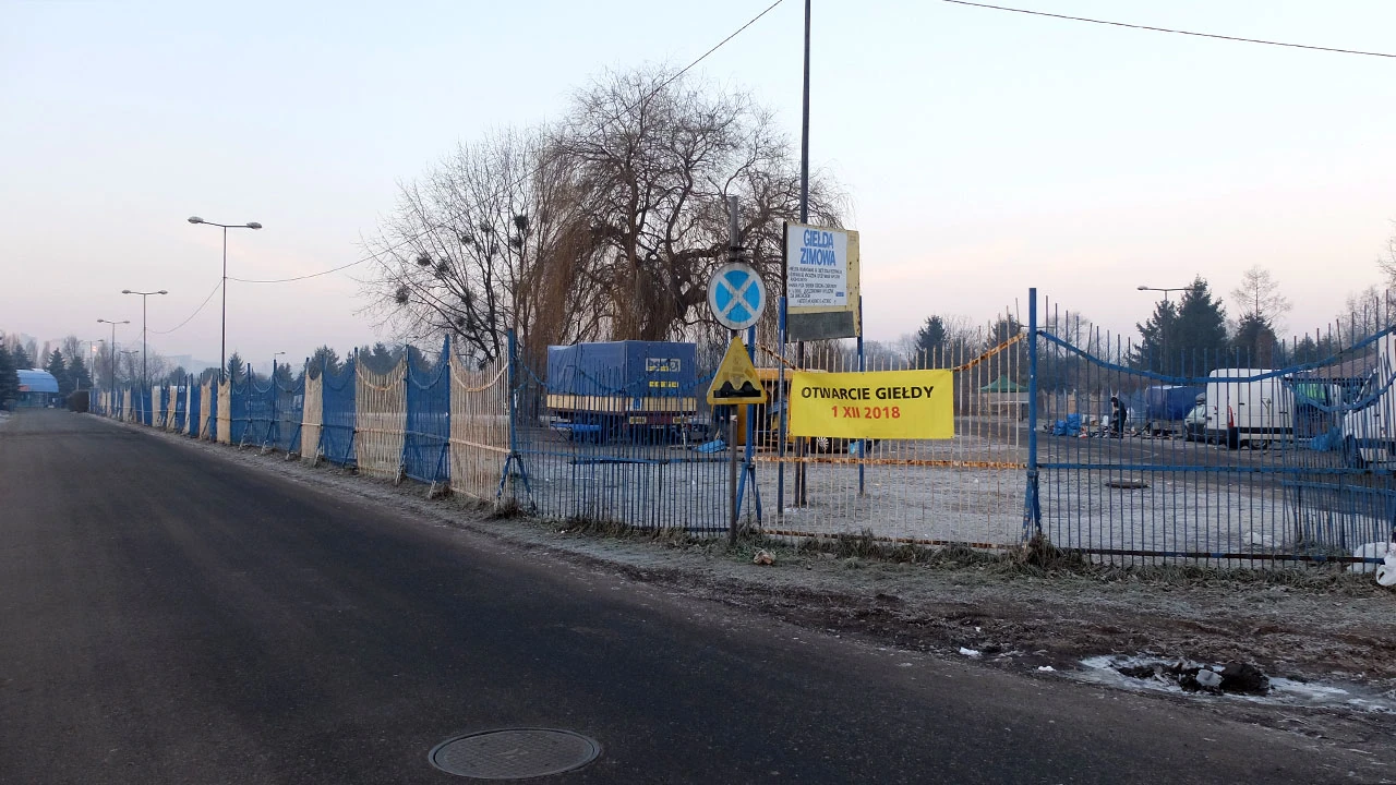 Przed torem rozkłada się giełda zimowego sprzętu sportowego. Czy ktoś kupuje taki sprzęt gdy zimy nie ma? Tu też króluje brzydota.